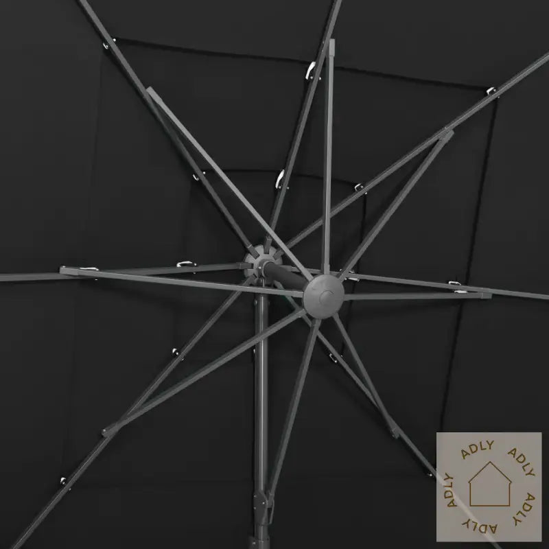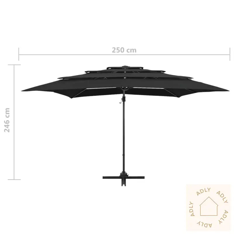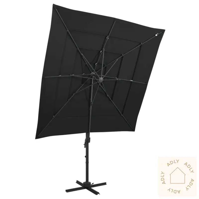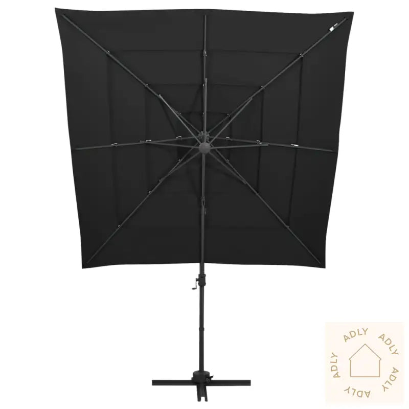 Farge: svartMaterialer: polyester, pulverlakkert aluminiumSamlet mål: 250 x 250 x 246 cm (B x D x H)Mål kryssfot: 100 x 100 cm (L x B)Inkluderer 8 sterke aluminiumsspiler