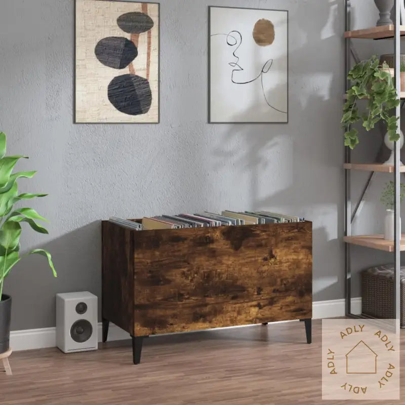 Slitesterkt materiale: Laget av konstruert treverk i høy kvalitet med glatt overflate, er denne benken både solid og stabil, samtidig som den tåler fuktighet. Dette gir deg varige møbler du kan stole på.Rikelig lagringsplass: Platespillerskapet har god plass til LP-platene dine, slik at du enkelt kan organisere og holde orden på platesamlingen din. Alt har sin faste plass – praktisk og oversiktlig!Fleksibel bruk: Bruk den ikke bare som vinylbenk, men også som sideskap i stua eller arkivskap på kontoret. Passer like godt med andre møbler og gir deg flere muligheter for smart oppbevaring.Metallben: De solide metallføttene gir skapet en moderne, industriell touch og sørger for ekstra stabilitet på alle underlag. Robust design kombinert med et elegant utseende gjør dette til et ideelt tilskudd blant møbler til hjemmet.Farge: Røkt eikMaterialer: Konstruert tre, metallMål: 74,5 x 38 x 48 cm (B x D x H)Montering kreves: Ja