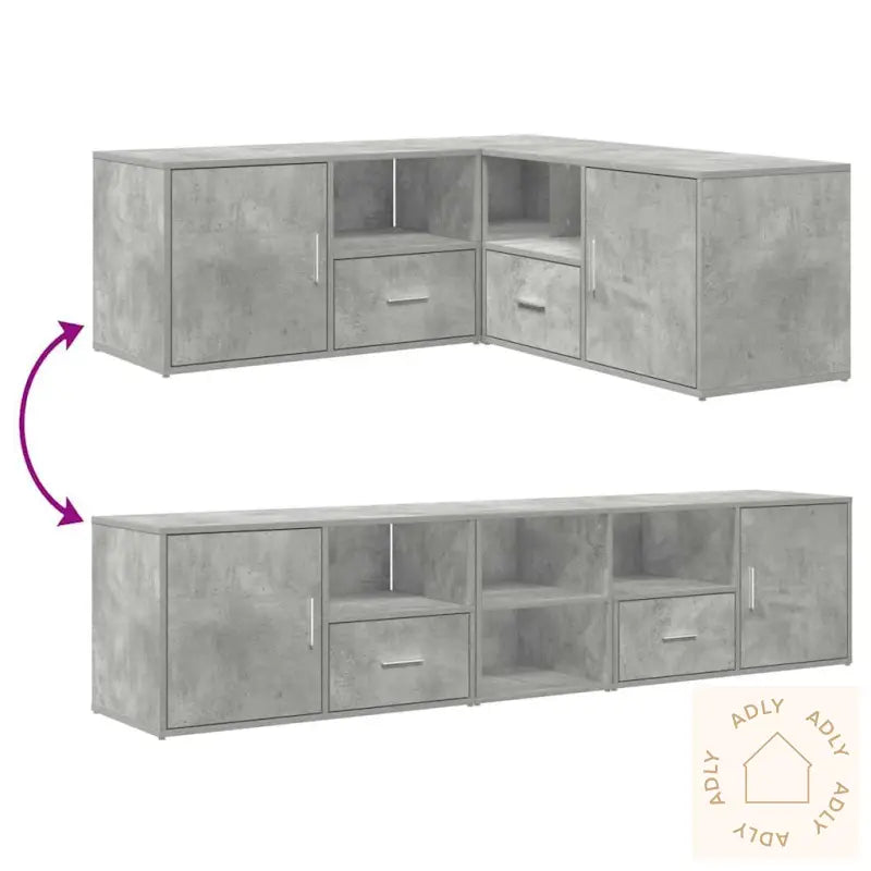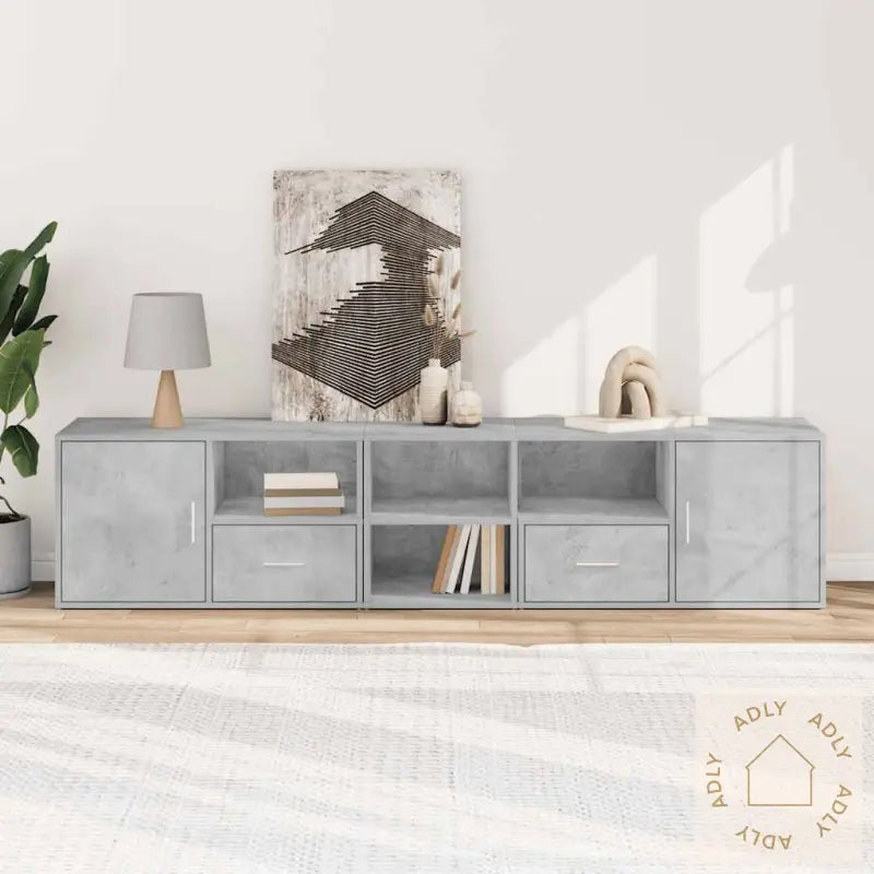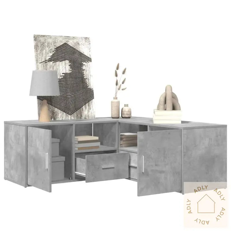 Holdbart materiale: Det konstruerte treverket gir skapet en førsteklasses finish. Overflaten er glatt og robust, noe som gjør den motstandsdyktig mot fukt og slitasje – perfekt for dagliglivet hjemme.Fleksibel montering: Skapet kan settes opp slik at det blir ekstra bredt, eller vinkles inn i hjørnet for å få mest mulig ut av plassen. Uansett hvilken løsning du velger, får du det tilpasset rommet ditt og dine behov for oppbevaring.God lagringsplass: Med flere rom og praktiske skuffer sørger dette møbelet for at du alltid har rikelig med plass til å organisere alt fra bøker og blader, til pynt og nødvendigheter – alt lett tilgjengelig.Sterk bordplate: Den solide toppen gir deg mulighet til å sette frem bilder, dekor eller grønne planter, så du kan gjøre skapet personlig og stemningsfullt.Superenkel å holde ren: Den glatte overflaten tørkes på et blunk med en fuktig klut, så dette skapet krever veldig lite vedlikehold – perfekt for travle hverdager.Farge: betonggråMateriale: konstruert treMål (horisontalt): 200 x 40 x 45 cm (B x D x H)2 monteringsmåter: horisontalt og hjørneMaks. lastekapasitet: 90 kgMontering kreves: ja