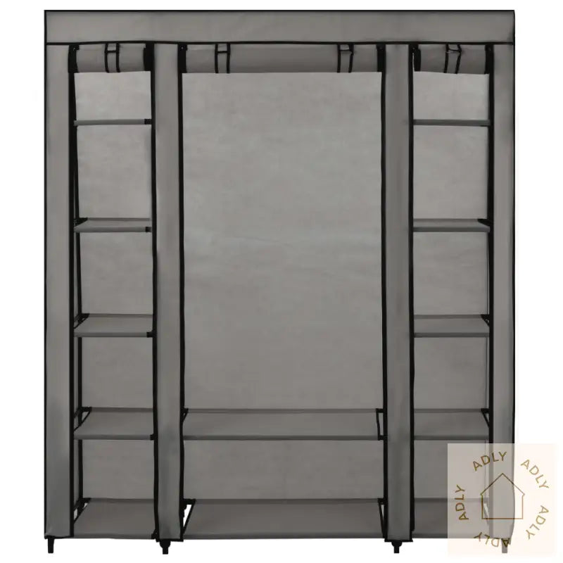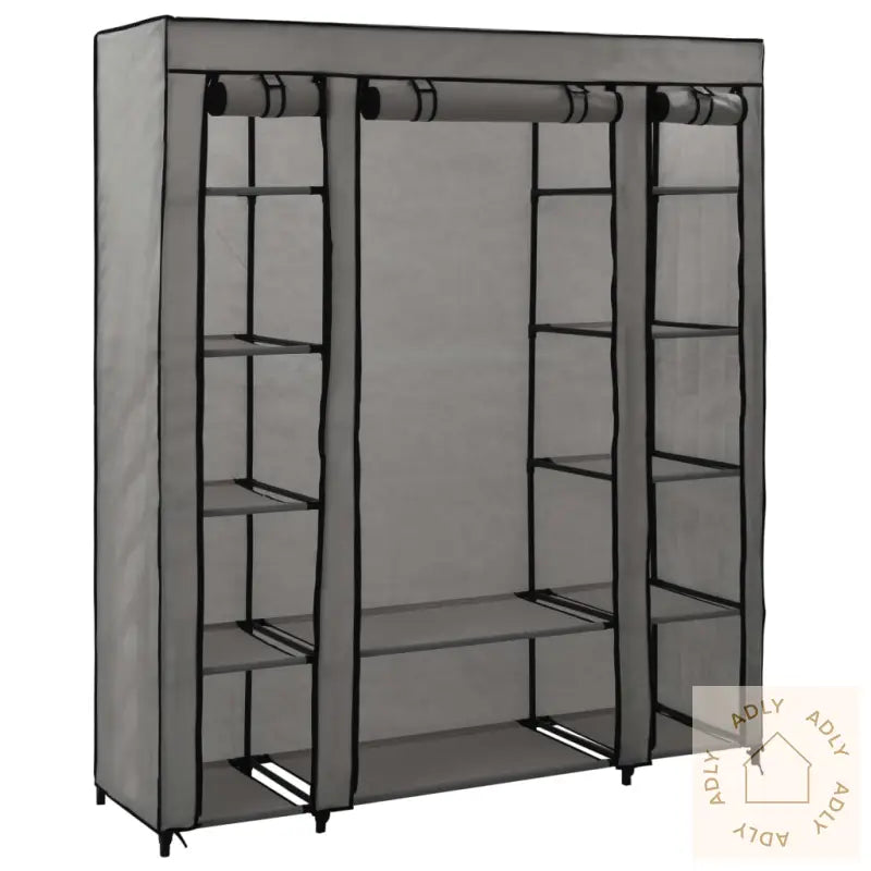 Farge: gråMål: 150 x 45 x 176 cm (B x D x H)Materiale: uvevd stoffLeveres med jernrør og solide plastkontakterADVARSEL: For sikker bruk og for å unngå at produktet velter, må de medfølgende festene brukes for å forankre garderoben til veggenStoff: 100% polyesterLegal Documents: