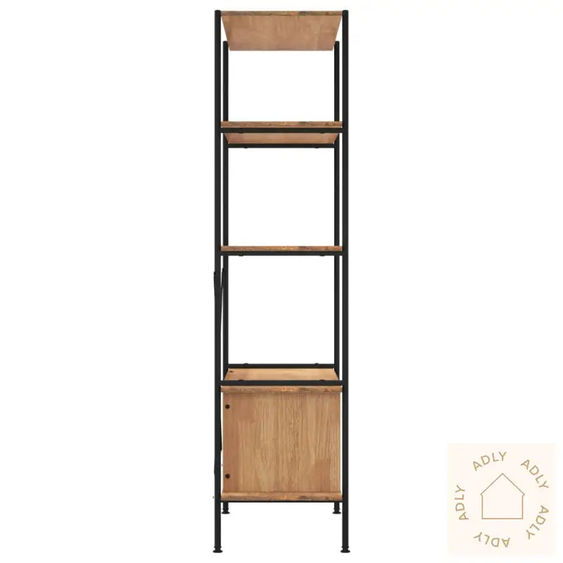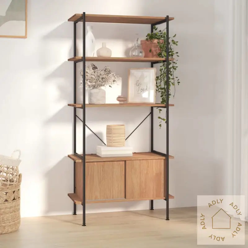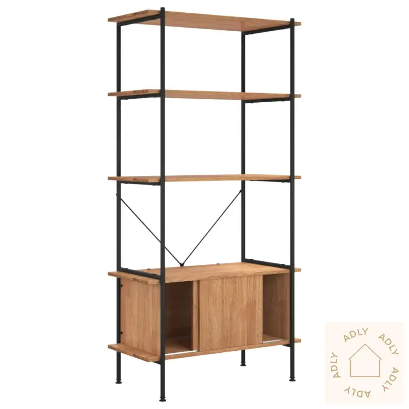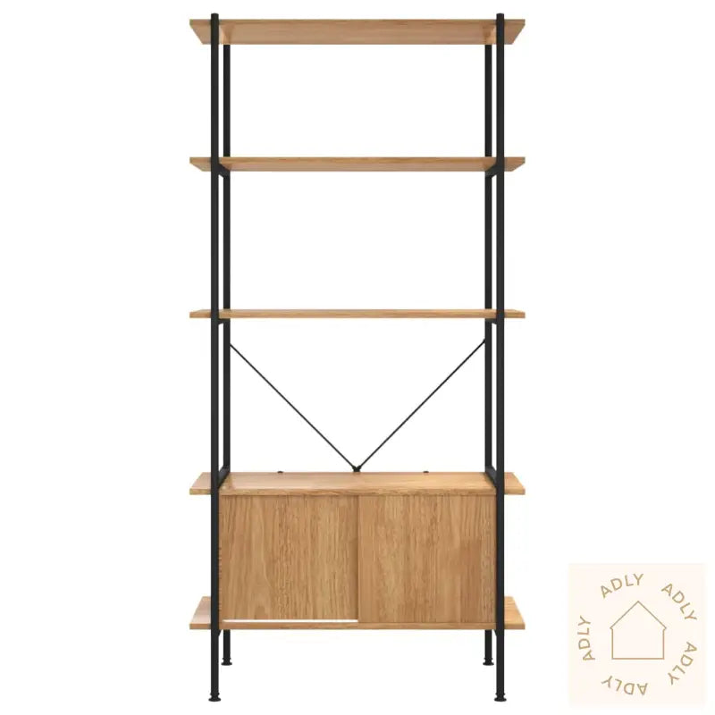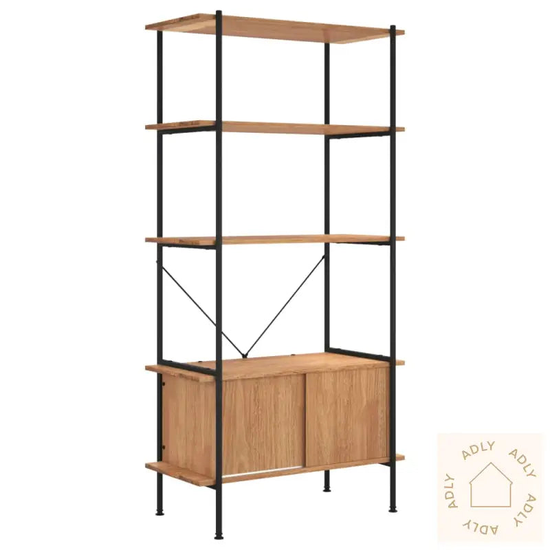 Sterk stålkonstruksjon: Den robuste stålrammen gir både styrke og stabilitet, noe som sikrer at hyllen står stødig selv når den er fylt opp. Perfekt for deg som ser etter holdbare møbler til hjemmet eller kontoret.Rikelig med lagringsplass: Selv om bokhyllen kun tar opp minimalt med gulvplass, gir de fem lagene deg god plass til alt fra favorittbøker og grønne planter til bilderammer og dekor. Perfekt for deg som ønsker en smart løsning uten å fylle rommet med store møbler.Praktisk skap: Skapdelen nederst lar deg gjemme unna personlige ting og beskytter mot støv, slik at alt ser ryddig ut. Dette gjør hyllen ekstra praktisk sammenlignet med mange andre bokhyller og stående hyller.Bredt bruksområde: Denne hyllen passer inn overalt – uansett om du trenger ekstra oppbevaring på badet, soverommet, stua, gangen eller til kontoret. Kombinasjonen av lysebrunt tre og svart stål gir den et moderne preg som fungerer i de fleste interiørstiler.ADVARSEL: