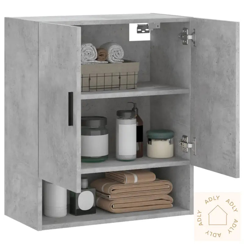 Skruer og plugger for veggmontering er ikke inkludert. Velg fester som passer til veggen hjemme hos deg. Er du usikker, er det lurt å spørre en fagperson om råd. Følg alle monteringssteg i veiledningen nøye for best resultat.Farge: betonggråMateriale: konstruert treMål: 60 x 31 x 70 cm (B x D x H)Montering kreves: ja