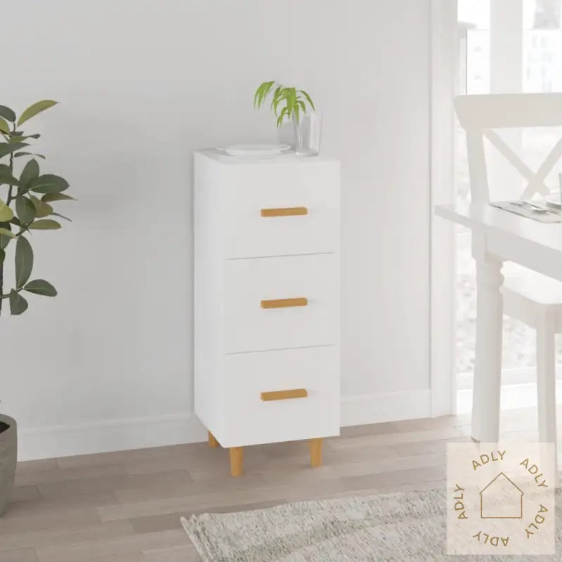 Solid materiale: Skjenken er laget av konstruert treverk med høy kvalitet, kjent for sin glatte overflate, solide styrke, og gode motstand mot fuktighet. Det gjør møbelet slitesterkt og enkelt å holde rent – praktisk i en travel hverdag.Rikelig med lagringsplass: Med 3 romslige skuffer har du rikelig med muligheter til å organisere og skjule tingene dine. Du får god oversikt og mer orden, noe som gir en ryddigere og mer avslappende atmosfære hjemme.Treføtter: De robuste treføttene i heltre eukalyptus tilfører en naturlig touch og sikrer ekstra stabilitet for skjenken. Dette gir møbelet et varmt uttrykk som passer godt sammen med både klassisk og moderne interiør – enten det er i stua, gangen eller soverommet.Denne skjenken er et smart tillegg til alle som ønsker fleksible, funksjonelle og dekorative møbler til hjemmet. Enkel design gjør det lett å kombinere med ulike stiler – perfekt både alene eller sammen med andre møbler.