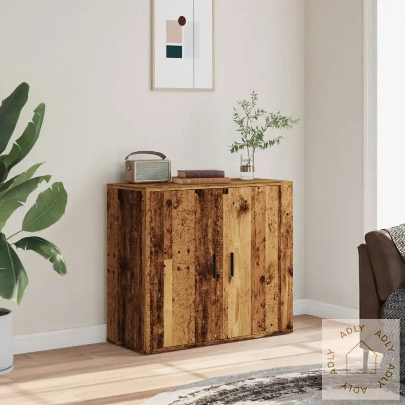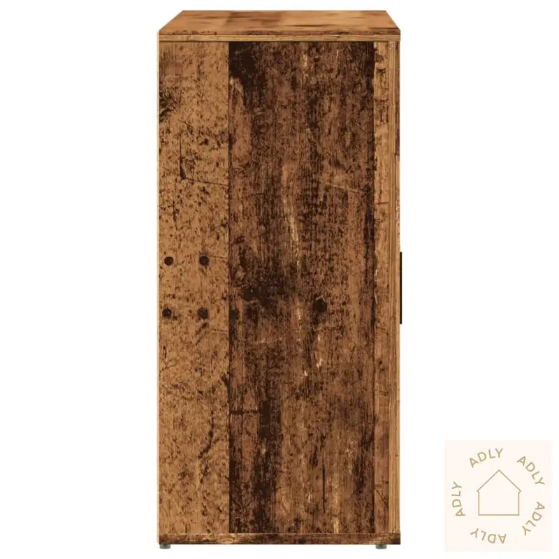 Stabilt og slitesterkt materiale: Skjenken er laget av konstruert tre – et robust materiale kjent for sin stabilitet og holdbarhet. Overflaten tåler fuktighet og holder seg pen lenge, slik at du får et møbel du kan stole på år etter år. Perfekt for deg som vil ha stilige møbler uten mye vedlikehold.Tilstrekkelig lagringsplass: Med flere rom og praktiske dører får du god plass til å organisere alt fra bøker, servise og dokumenter til andre nødvendigheter. Her har du rikelig med lagringsplass slik at tingene dine holder seg ryddige og lett tilgjengelige.Robust topp: Toppen av skapet kan brukes som utstillingsflate for bilder, dekor eller potteplanter som setter et personlig preg på rommet. Det gjør skjenken til mer enn bare oppbevaring – den blir også et dekorativt element blant favorittmøblene dine.Praktiske dører: De diskré dørene hjelper deg å holde unna rot, slik at rommet alltid ser velstelt ut. Perfekt til å skjule småting og samtidig få et ryddig uttrykk.Skjenken kommer i den stilige fargen gammelt tre og matcher både klassiske og moderne møbler til hjemmet, samt gir en varm og innbydende følelse. Den kompakte størrelsen (80 x 33 x 70 cm) gjør den enkel å plassere nesten hvor som helst hjemme.