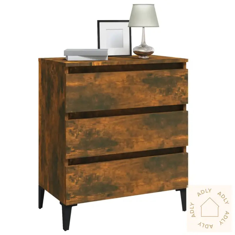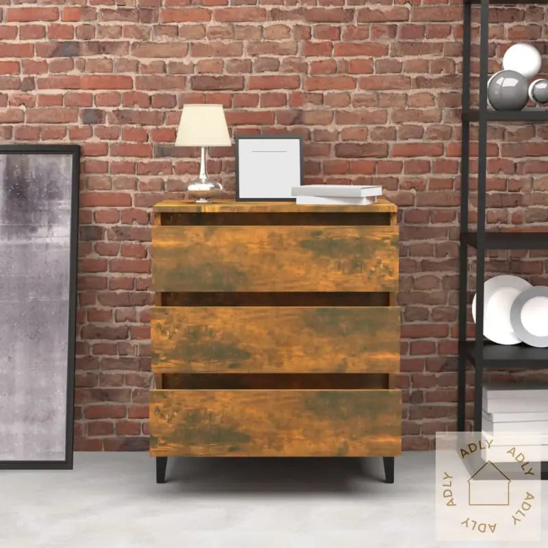For ekstra sikkerhet: Sørg for å bruke de medfølgende festene for å sikre produktet til veggen og unngå at det velter.Farge: Røkt eikMaterialer: Konstruert tre, metallMål: 60 x 35 x 69 cm (B x D x H)Med 3 skufferMontering kreves: jaLegal Documents: