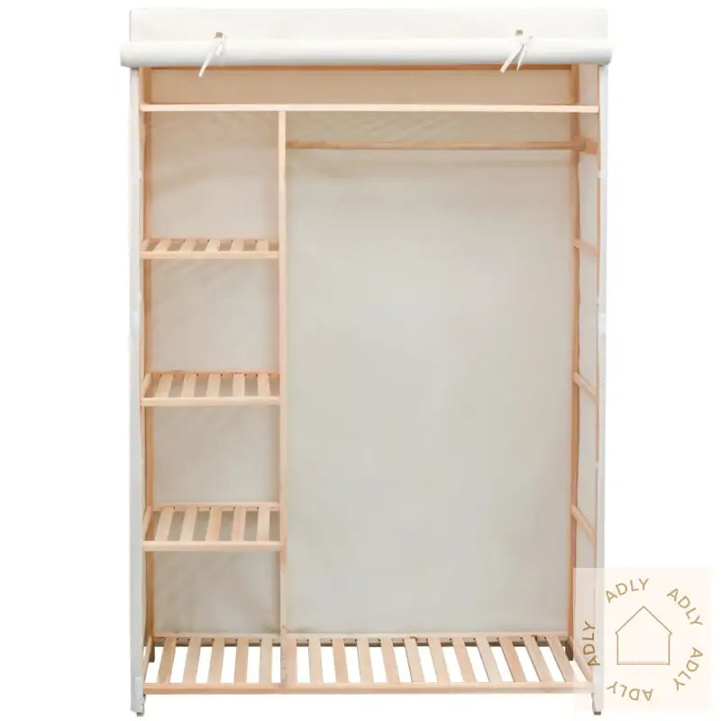 Denne praktiske stoffgarderoben er en smart og plassbesparende lagringsløsning for klær, sko og tilbehør, perfekt for deg som ønsker ryddige omgivelser hjemme. Med fem faste hyller får du god plass til å organisere alt fra sko, joggesko, jeans og luer til vesker og annet tilbehør. Den solide klesstangen gjør det lett å henge opp både frakker og kjoler, så du slipper rynker i favorittplaggene dine. Garderoben har et slitesterkt stofftrekk og en gardindør som enkelt kan åpnes og lukkes, og holder både klærne og skoene dine fri for støv. Dette gir ikke bare orden i hverdagen, men beskytter også mot skader – et godt valg enten du trenger ekstra oppbevaring på soverommet eller ønsker fleksible møbler til hjemmet ditt. Med sitt naturlige design i furu og slitesterkt bomulls- og polyesterstoff passer den inn blant mange typer møbler, som bokhyller og stående hyller.