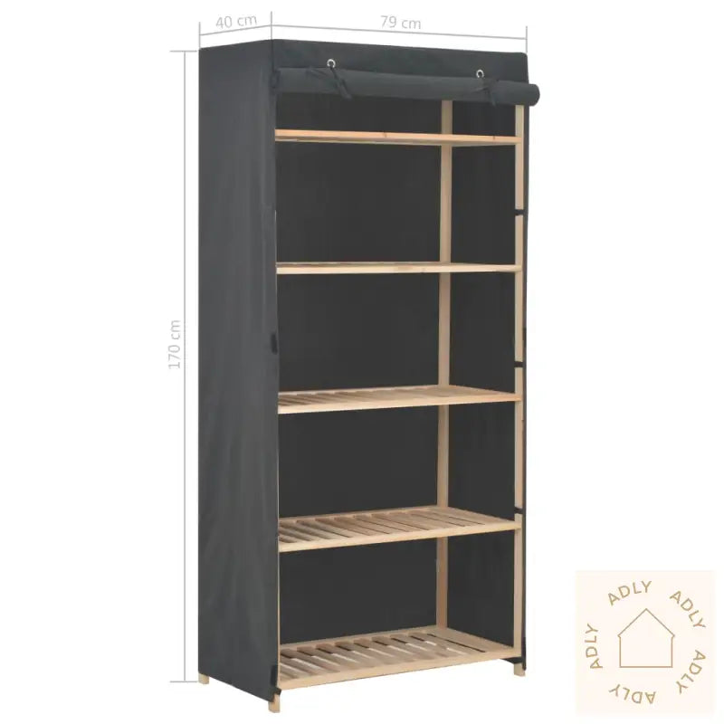 Farge: gråMaterialer: stoff og trerammeMål: 79 x 40 x 170 cm (B x D x H)ADVARSEL: For å forhindre at produktet velter, må medfølgende festemidler for vegg benyttesStoff: Bomull: 55%, Polyester: 45%Legal Documents: