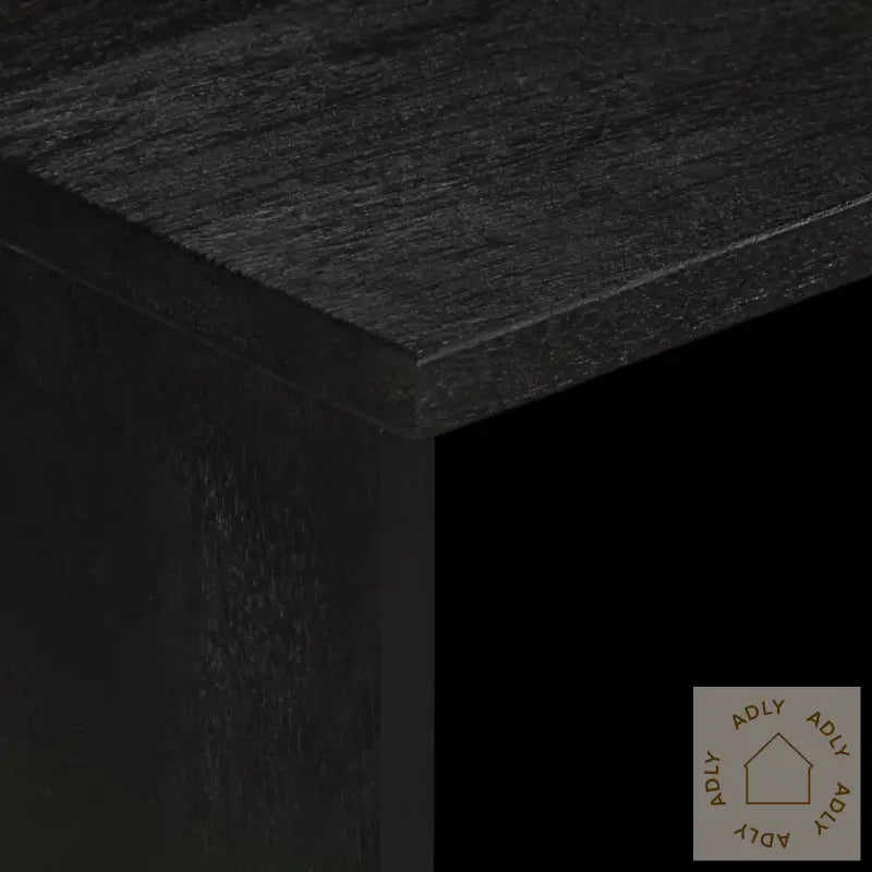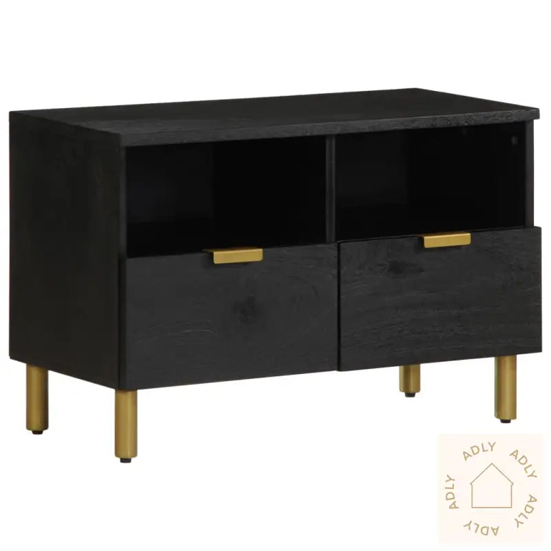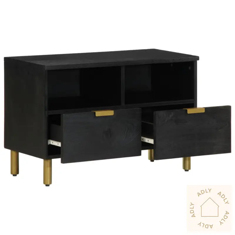 Stabilt og slitesterkt materiale: TV-benken er laget av konstruert tre – et robust og holdbart materiale som gir en glatt overflate og tåler fuktighet, vridning og sprekker. Dette gjør benken spesielt pålitelig i daglig bruk og passer utmerket blant moderne møbler og bokhyller og stående hyller.Rikelig med oppbevaringsplass: Du får rikelig plass til å holde magasiner, bøker, DVD-er eller multimedieenheter samlet og ryddig, slik at rommet føles organisert. Alt du trenger er lett tilgjengelig, noe som gir deg en roligere hverdag med orden.Metallhåndtak: Metallhåndtakene gir ikke bare enkel tilgang, men tilfører også en stilig, industriell look som matcher med andre moderne møbler til hjemmet.Enkel å vedlikeholde: HiFi-skapet krever lite vedlikehold – bruk bare en fuktig klut for rask rengjøring. Praktisk hvis du vil bruke tiden din på annet enn rengjøring av møbler.Farge: svartMaterialer: konstruert tre, heltre mango, messingSamlet mål: 70 x 33 x 46 cm (L x B x H)Høyde fot: 10 cmMontering kreves: ja