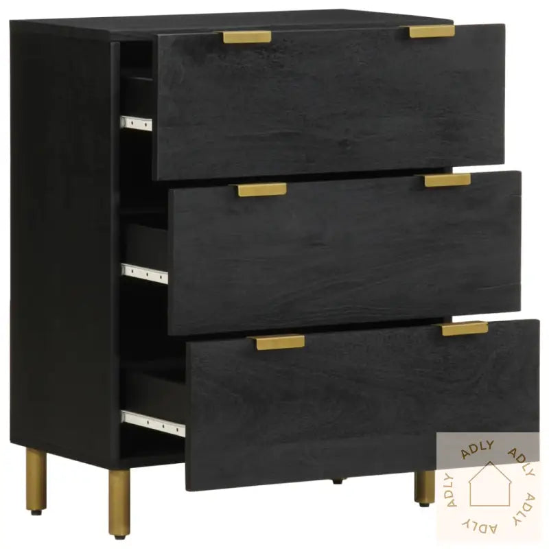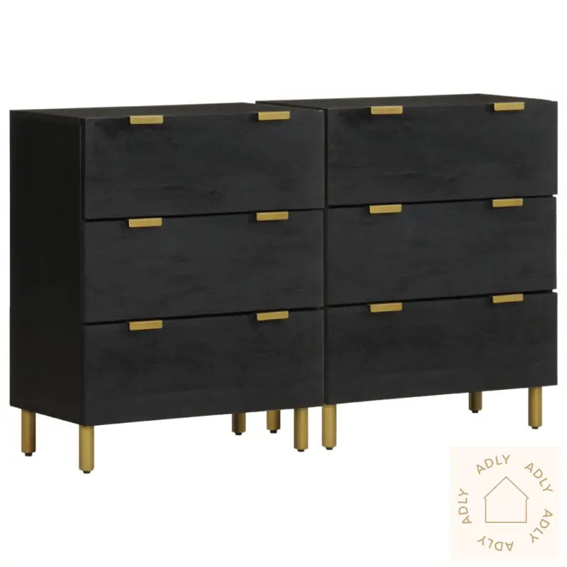For økt sikkerhet bør du bruke den medfølgende festeanordningen for å forhindre at møblene velter, spesielt hvis du har barn hjemme.Farge: SvartMaterialer: Konstruert tre, heltre mango, messingSamlet mål (hver): 60 x 33 x 75 cm (B x D x H)Høyde fot: 10 cmMontering kreves: jaLeveransen inneholder:2 x skjenker