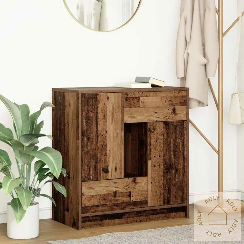Stabilt og slitesterkt materiale: Produsert i konstruert tre, et robust og stabilt materiale med glatt overflate. Dette gjør at skjenken tåler daglig bruk godt og motstår både fuktighet og deformering over tid. Nettopp denne styrken gir deg møbler som varer lenge og krever lite vedlikehold, perfekt for travle hjem.Rikelig med lagringsplass: Den har både dører og skuffer, så du får god plass til alt fra servise til pyntegjenstander. De to skapdørene beskytter tingene dine mot støv og holder dem pent ute av syne, mens de romslige skuffene gir rask tilgang til småting du bruker ofte.Robust toppoverflate: Bordplaten er solid og romslig, så du kan enkelt plassere blomster, dekor eller servere mat når du får gjester. Du får en pålitelig overflate som tåler både pynt og daglige behov, noe som gjør denne skjenken til en nyttig del av dine møbler enten du vil bruke den som buffetbord eller ekstra avlastningsplass.Allsidig bruk: Med sin tidløse stil passer denne skjenken inn nesten overalt – som smart gangskap ved inngangsdøren, organisering i stua, eller ekstra lagring på kjøkkenet. Den tilpasser seg lett ulike interiørstiler og bidrar til å opprettholde orden i hjemmet ditt, uansett hvor du plasserer den.Enkel å vedlikeholde: Overflaten er glatt og enkel å tørke av – perfekt for en travel hverdag. Du holder skjenken pen med bare en rask vask med en fuktig klut.Advarsel: