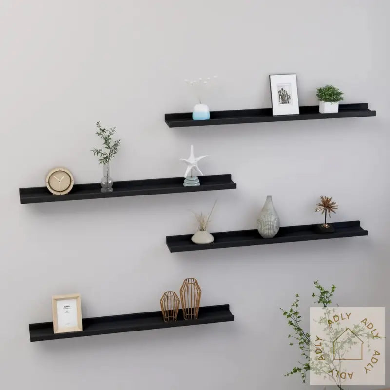 Denne veggmonterte hyllen er laget av slitesterk MDF, så den tåler daglig bruk og holder seg pen lenge. Hyllen passer supert til å vise frem alt fra småplanter og kaffebøker til pyntegjenstander. Monter dem over skapet i stua, ved sofaen eller over spisebordet for å gi rommet et friskt uttrykk og et snev av moderne eleganse. Den sorte hyllen er lett å matche med andre møbler og gir et tidløst preg på interiøret. Når det er behov, tørker du enkelt overflaten med en fuktig klut for rask rengjøring. Maksimal lastekapasitet er 5 kg per hylle, så det er rom for både dekor og funksjonelle ting.