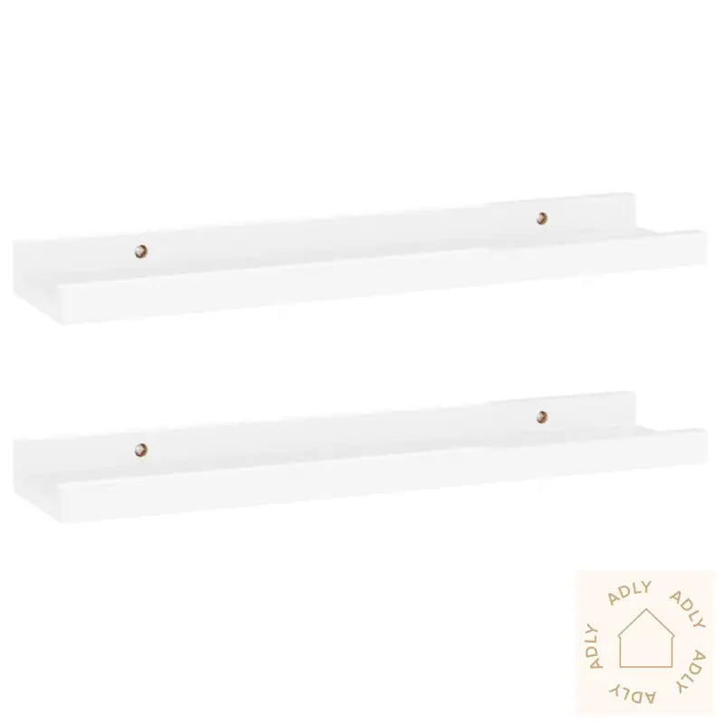 Farge: høyglans hvitMateriale: MDFMål: 40 x 9 x 3 cm (B x D x H)Maksimal lastekapasitet (hver): 5 kgMontering kreves: ja