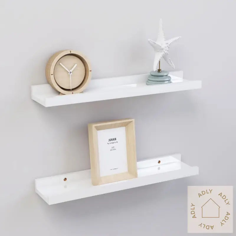 De veggmonterte hyllene er laget av slitesterk MDF, så de tåler bruk i hverdagen og holder seg fine lenge. Disse funksjonelle hyllene gir deg plass til alt fra bøker og sukkulenter til pyntegjenstander og små samleobjekter. Plasser dem over skapet, bak sofaen eller ved bordet for å skape en frisk og innbydende atmosfære – det er en smart måte å fornye rommet på uten å måtte bytte ut større møbler. Den glanshvite finishen sørger for et tidløst utseende som passer godt sammen med både moderne og klassiske interiører.