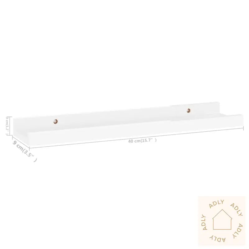 Farge: høyglans hvitMateriale: MDFMål: 40 x 9 x 3 cm (B x D x H)Maksimal lastekapasitet (hver): 5 kgMontering kreves: ja