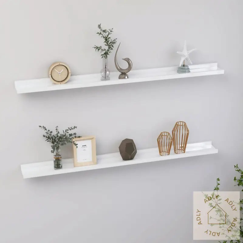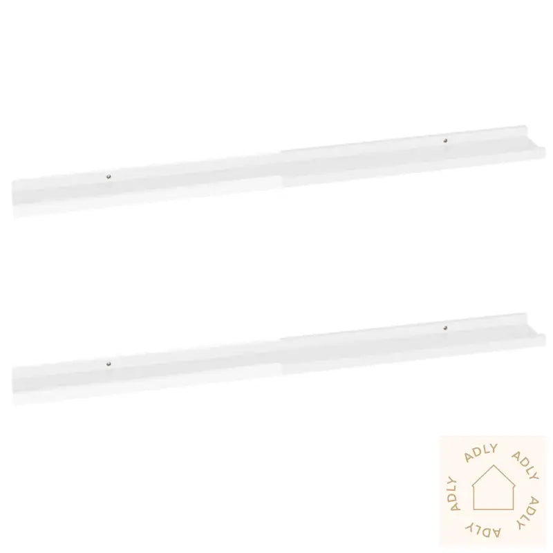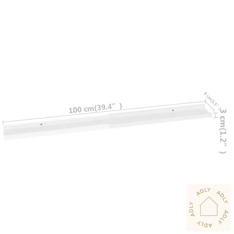 Farge: høyglans hvitMateriale: MDFMål: 100 x 9 x 3 cm (B x D x H)Maksimal lastekapasitet (hver): 5 kgMontering kreves: ja