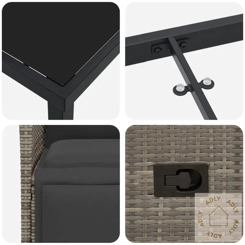 Dette settet med recliner hagemøbler er perfekt for å friske opp ethvert uteområde, og gir deg en kombinasjon av moderne stil og praktisk sitteplass. Med sitt elegante uttrykk og funksjonelle løsning bidrar disse utendørsmøblene til en hyggelig atmosfære på patioen, balkongen eller terrassen, enten du vil koble av med en god bok eller invitere venner over til en sosial kveld utendørs. Dette er møbler som ikke bare ser bra ut, men som også tilbyr deilig komfort år etter år.
