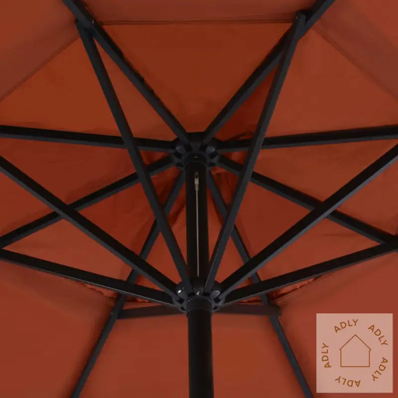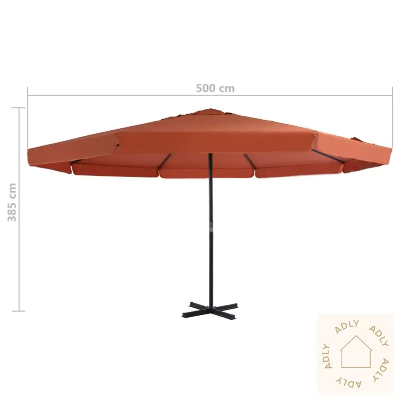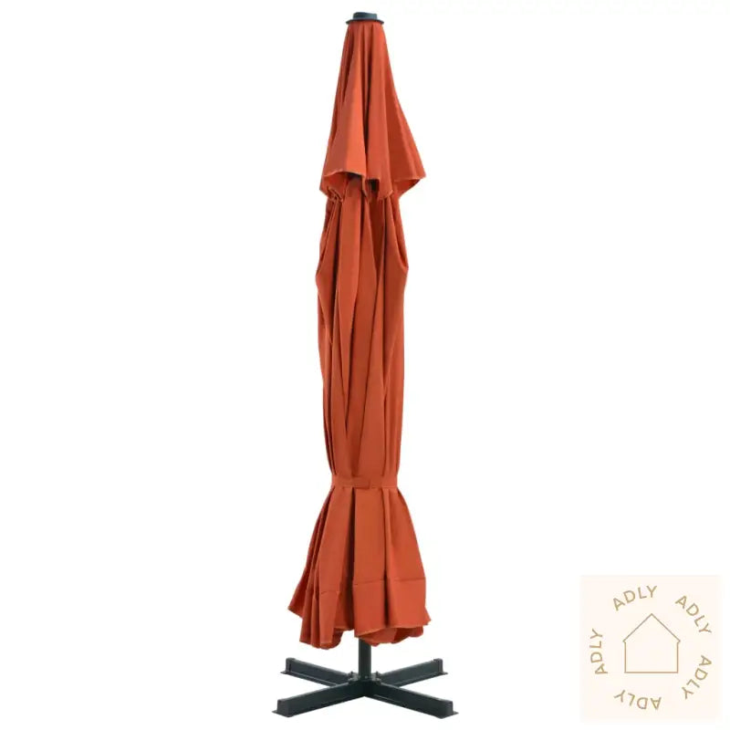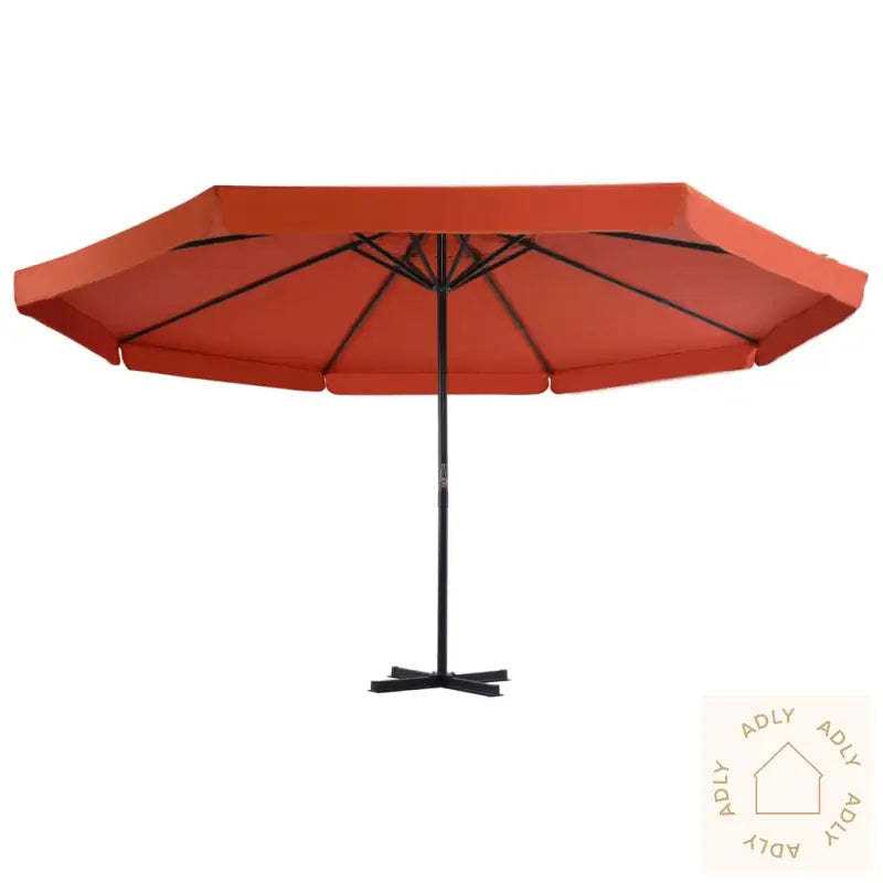 Parasoll:Farge: terrakottaHøyde: 3,85 mDiameter: 5 m – gir ekstra god skygge for familie og vennerMaterialer ramme: aluminium + stålInkluderer sveivhåndtak for enkel betjeningMed kryssbase av stål for økt stabilitetEkstra parasollbase:Farge: svartMateriale: plastMål hver seksjon: 50 x 50 x 7,5 cm (L x B x H)Kan fylles med vann eller sand etter behovKapasitet per del: 15 L4 deler totalt – fleksibelt for ulike parasollerPasser til alle typer kryssføtter for hageparasoller