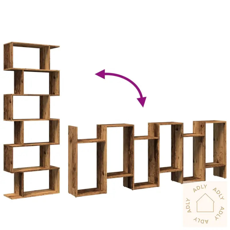 Farge: gammelt treMateriale: konstruert treStørrelse totalt: 70 x 24 x 193 cm (B x D x H)Mål på hvert oppbevaringsrom: 52 x 24 x 30,5 cm (B x D x H)Total vektkapasitet: 60 kgBæreevne per rom: 10 kgKan brukes som både bokhylle og dekorativ romdelerKrever enkel monteringLegal Documents: