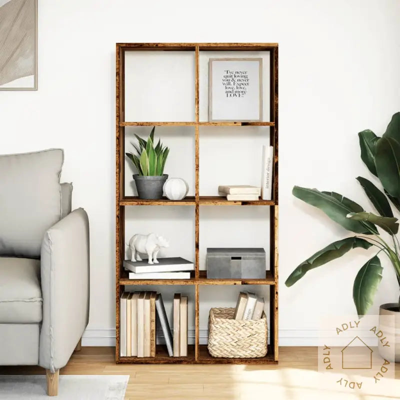 Skruer og plugger til veggmontering følger ikke med. Det anbefales å finne skruer og plugger som passer til nettopp dine vegger. Er du usikker, bør du kontakte en profesjonell for råd. Følg alltid instruksjonene nøye under montering.Farge: gammelt treMateriale: konstruert treMål: 69,5 x 29 x 137,5 cm (B x D x H)Hvert rom: 32,5 x 29 x 32,5 cm (B x D x H)Antall rom: 8Total vektkapasitet: 100 kgMaks vekt per rom: 10 kgKan brukes som både bokhylle og romdelerMontering krevesLegal Documents: