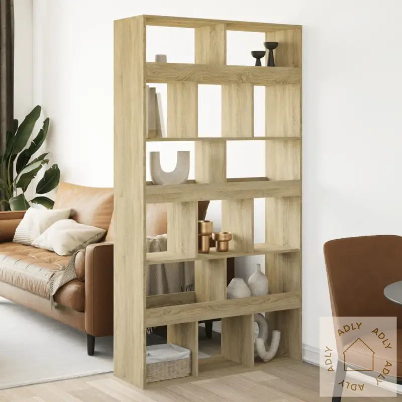 Slitesterkt materiale: Den er laget av konstruert tre i høy kvalitet, noe som gir en jevn, fin overflate med god styrke og stabilitet. Materialet gjør at produktet tåler daglig bruk og gir ekstra beskyttelse mot fukt.Rikelig oppbevaringsplass: Takket være sine 15 romslige hyller får du godt med plass til å organisere alt fra magasiner og bøker, til DVD-er, diverse elektronikk og dekorative elementer. Alt holdes lett tilgjengelig og oversiktlig, noe som gir orden og ryddighet i hjemmet.Allsidig og fleksibel løsning: Romdeleren fungerer ikke bare som romavskjerming, men kan også brukes som en romslig bokhylle, noe som gjør den ideell både i stua, på hjemmekontoret eller andre steder du ønsker å skape litt ekstra oppbevaringsplass eller dynamikk.Enkel rengjøring og lite vedlikehold: Den glatte overflaten gjør at støv og smuss lett kan tørkes bort med en fuktig klut, så hyllen holder seg pen år etter år uten mye innsats.Advarsel: