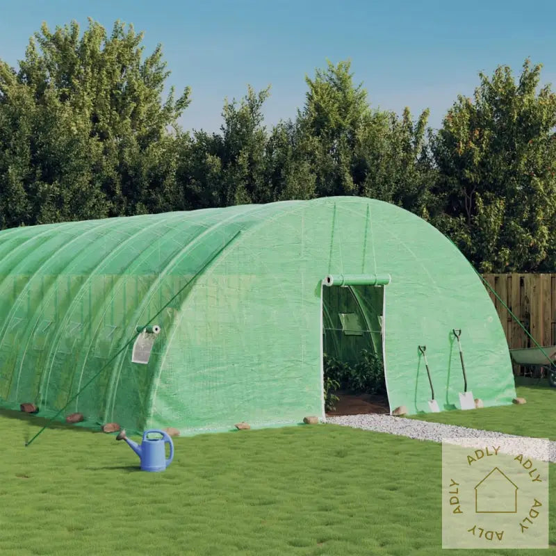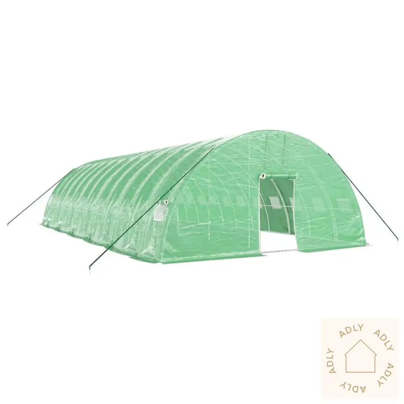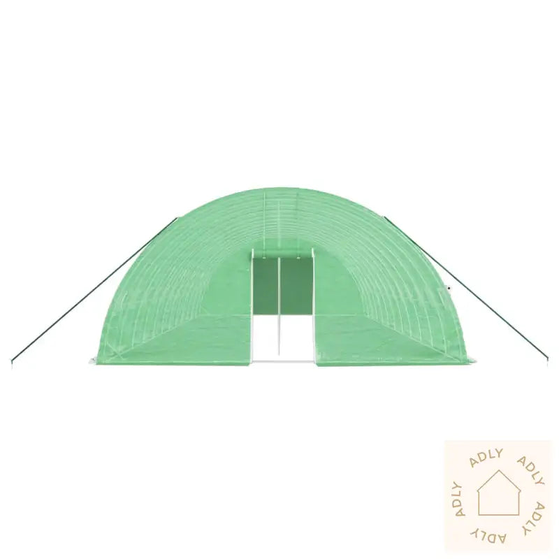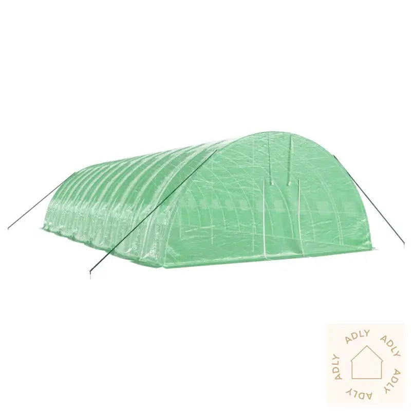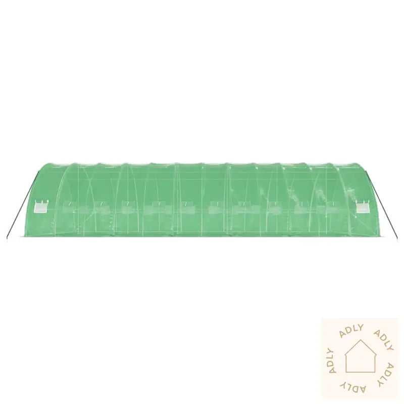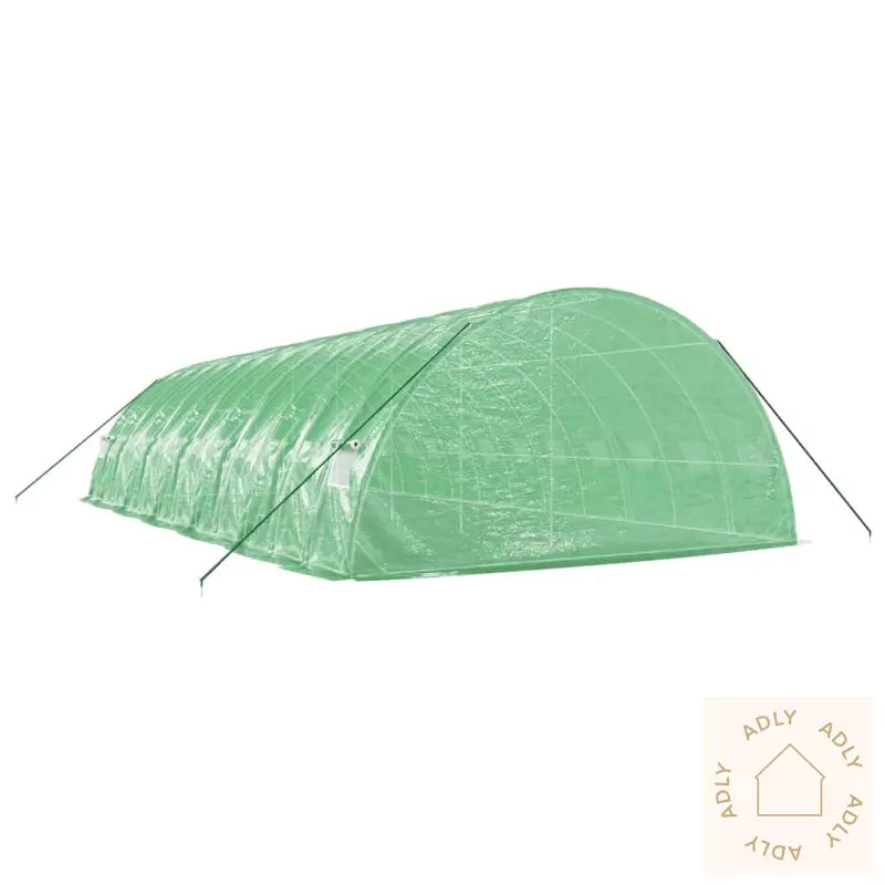Vi anbefaler et solid fundament for ekstra stabilitet. Taket på drivhuset er ikke beregnet for store snømengder.Farge: grønnMaterialer: PE (polyetylen), galvanisert stålMål: 12 x 6 x 2,85 m (L x B x H)Mål vindu (hver): 40 x 40 cm (L x B)Mål dør: 100 x 185 cm (B x H)Tetthet av PE: 140 g/m²Med 2 glidelåserMontering kreves: ja