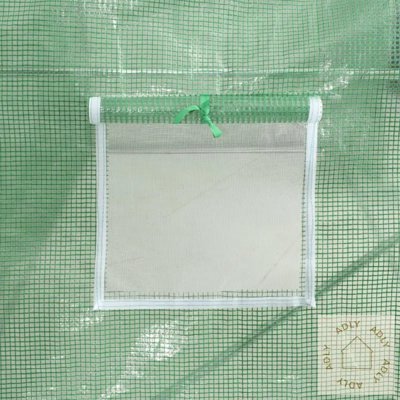 Praktisk design: Drivhuset har en smidig rulledør med glidelås, slik at du lett får tilgang til plantene dine samtidig som du kan stenge ute kulda når det trengs. Fire sidevinduer med netting sørger for optimal luftsirkulasjon, bedre temperaturkontroll og mindre risiko for overoppheting i sommermånedene.Godt å vite: