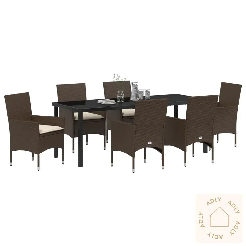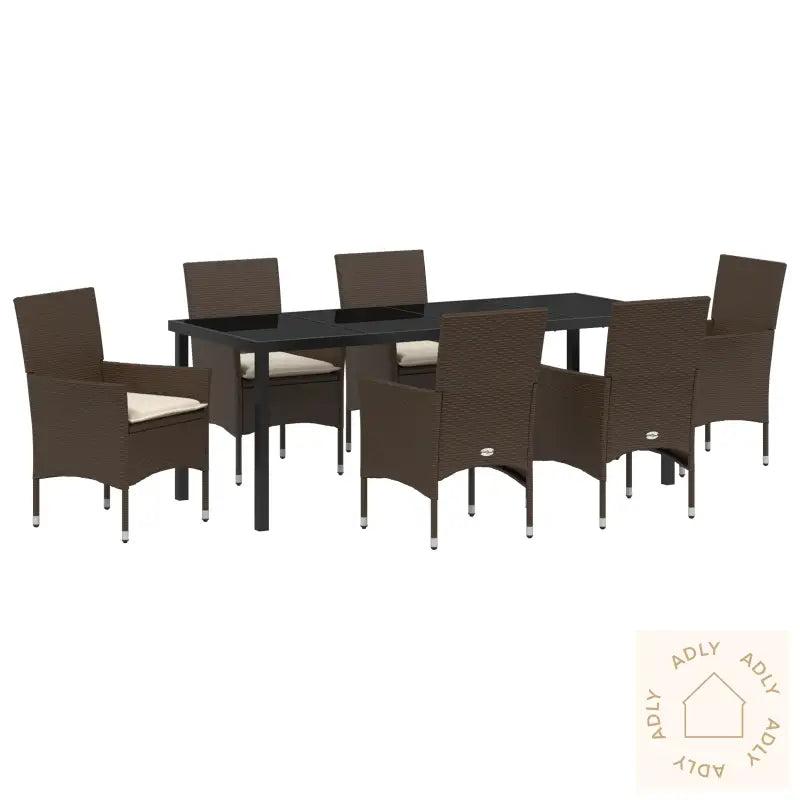 Dette romslige hage spisebordet er perfekt når du inviterer venner eller familie til store utendørs sammenkomster, og byr på en lekker kombinasjon av moderne stil og funksjonalitet. Med en dyp brun finish i poly rattan og myke, kremfargede puter setter spisegruppen ekstra stemning på både terrassen, balkongen og uteplassen din. Valget av materialer gir ikke bare et elegant uttrykk, men sørger også for at hagemøblene holder seg fine gjennom flere sesonger.