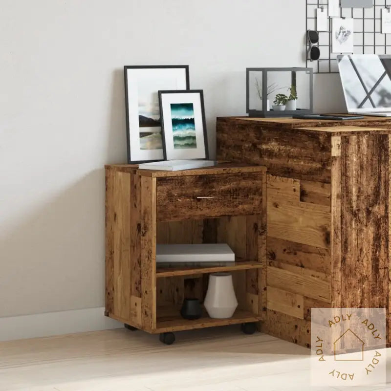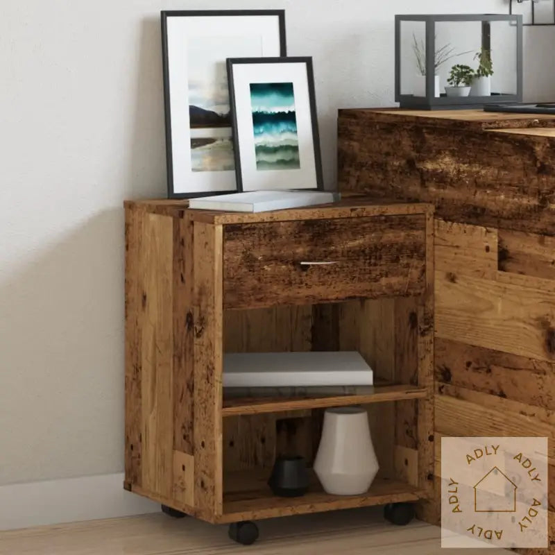 Skapet er laget av konstruert tre, kjent for sin jevne overflate og gode holdbarhet. Materialet gjør at rulleskapet tåler daglig bruk, motstår fuktighet og holder seg pent i lang tid. Dette gir deg et pålitelig valg blant moderne møbler.Den smarte kombinasjonen av hylle og skuff sørger for mye oppbevaringsplass, slik at du kan holde alt du bruker ofte godt sortert og lett tilgjengelig. Perfekt for å organisere dokumenter, kontorsaker, bøker eller små elektronikk.Med fire svingbare hjul, hvorav to kan låses, kan skapet flyttes presist dit du ønsker – enten det skal stå i stuen, være del av bokhyller og stående hyller på kontoret, eller brukes som ekstra plass på soverommet. Låsemekanismen gir trygg og stabil plassering når skapet ikke skal flyttes.Toppen av skapet er robust og gir deg en stødig flate, perfekt for å sette fra seg kaffekoppen, vise frem en plante eller vise favorittbøkene dine. Det gjør at skapet enkelt kombineres med eksisterende møbler til hjemmet og løfter interiøret ditt.Med sitt tidløse og stilrene design passer dette rullende oppbevaringsskapet inn i ulike rom, enten du trenger fleksibel lagring til kontoret, kjøkkenet, eller blant øvrige møbler på soverommet.Farge: gammelt treMateriale: konstruert treMål: 46 x 36 x 59 cm (B x D x H)Enkel å rulle med 4 hjul (2 av dem låsbare)Montering kreves: ja