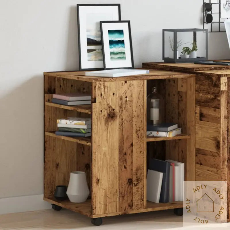 Rulledesign: Skapet har fire hjul som gjør det enkelt å flytte dit du trenger det, og to av hjulene kan låses for ekstra stabilitet. Dette gir deg full frihet til å organisere plassen akkurat slik du vil, enten du bruker den alene eller sammen med andre møbler.Farge: gammelt treMateriale: konstruert treMål: 60 x 53 x 72 cm (B x D x H)Lett å flytte rundt med 4 hjul (2 av dem er låsbare)Montering kreves