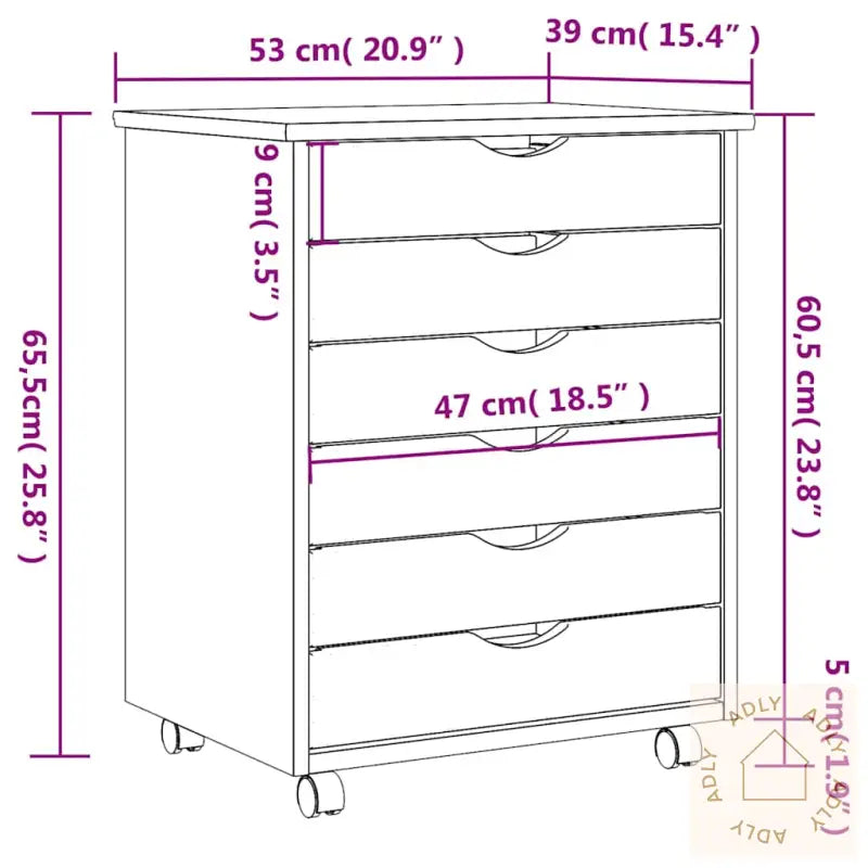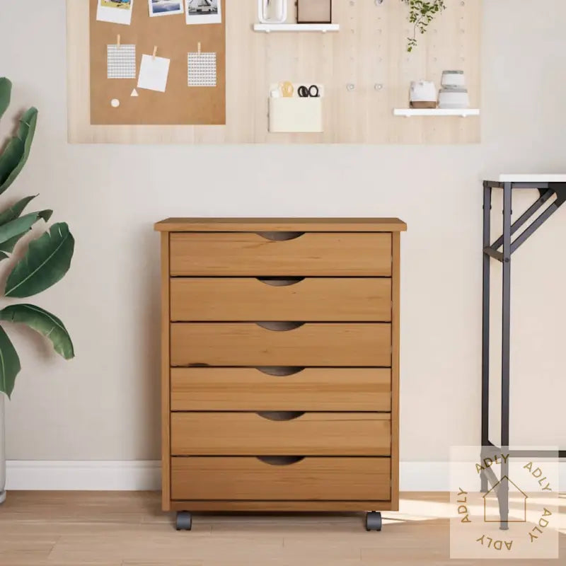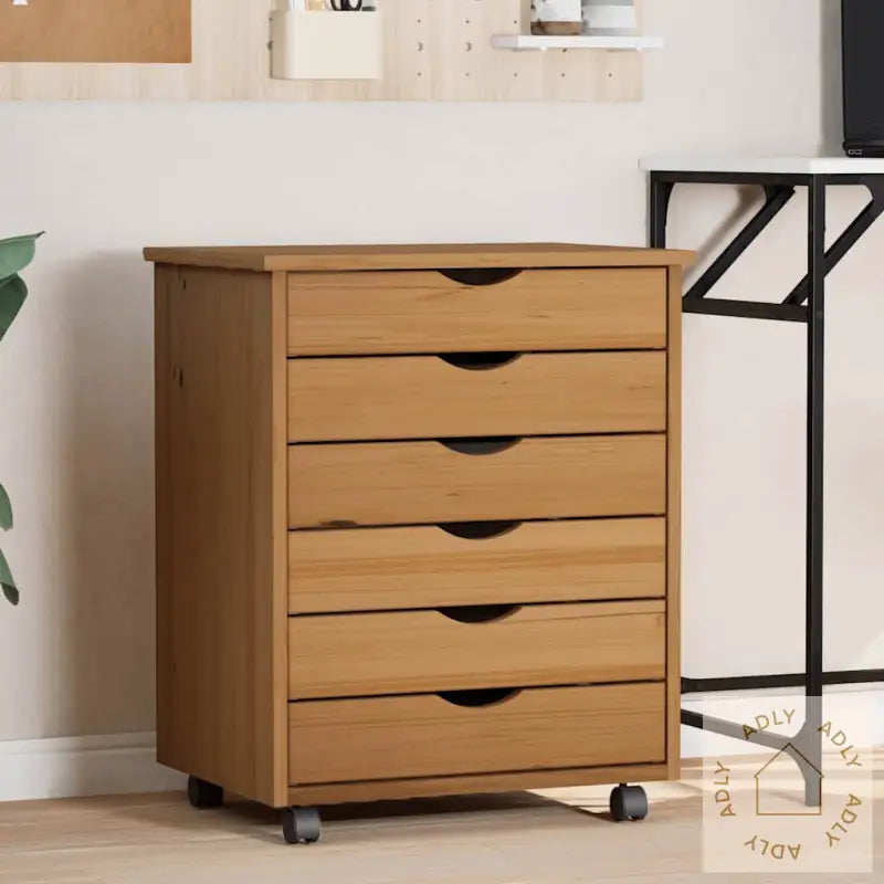 Dette rulleskapet med seks skuffer gjør det lettere å holde orden og gir deg alt du trenger lett tilgjengelig, enten du bruker det på kontoret eller hjemme. En perfekt løsning for deg som vil ha praktiske møbler til hjemmet laget av naturlige materialer.