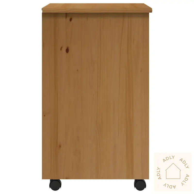 Fleksible hjul: De robuste hjulene lar deg smidig flytte rulleskapet mellom ulike arbeidsområder, noe som gir maks fleksibilitet i hverdagen. Låsbare hjul sørger for at det står stødig der du vil ha det.Rikelig lagringsplass: Med hele seks store skuffer får du god plass til å lagre og organisere dokumenter, bøker og andre nødvendigheter. Mål skuff: Ytre mål 47 x 34 x 9 cm (B x D x H), indre mål 45 x 33,5 x 7 cm (B x D x H). Perfekt for å plassere under en arbeidsstasjon slik at du sparer gulvplass, samtidig som alt er innen rekkevidde.Heltre furu: Laget av heltre furu med rett årring og synlige knuter, gir skapet et unikt, rustikt preg på innredningen. Heltre furu er slitesterkt og tidløst – et naturlig og miljøvennlig valg for deg som ønsker solide møbler til hjemmet.Allsidig bruk: Det enkle og stilrene designet matcher forskjellige rom, fra stue og soverom til kjøkken, garasje, kontor og hobbyrom. Skap ekstra system uansett om det brukes som kontorskap eller oppbevaring av småting og verktøy.Lett å rengjøre: Skapet har en glatt overflate du enkelt tørker av med en fuktig klut, slik at det alltid fremstår pent og velholdt.Farge: honningbrunMaterialer: Heltre furu, konstruert tre, plastMål: 53 x 39 x 65,5 cm (B x D x H)Ytre mål skuff: 47 x 34 x 9 cm (B x D x H)Indre mål skuff: 45 x 33,5 x 7 cm (B x D x H)Antall skuffer: 6Serie: MOSSMontering kreves: ja