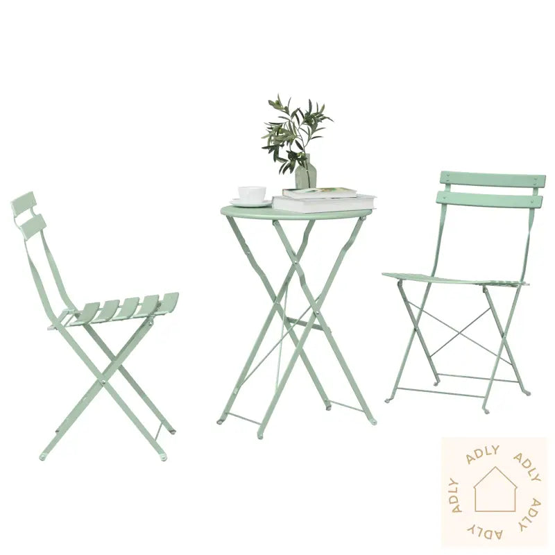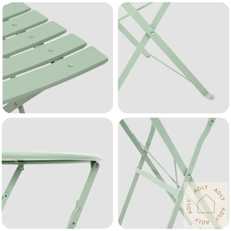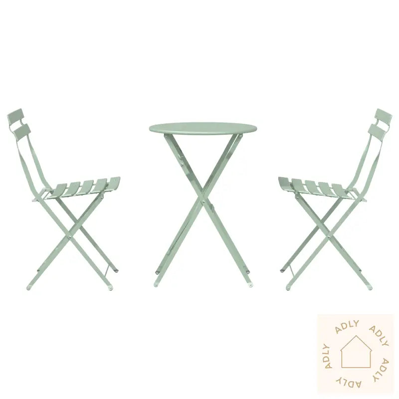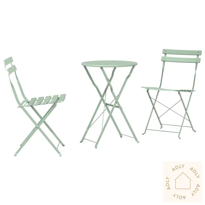 Det portable designet gjør det enkelt å flytte og oppbevare settet. Praktisk både ved sammenkomster og når du vil ommøblere uteplassen.Laget av UV-resistent materiale som beskytter mot solstråler, så fargene holder seg fine og klare gjennom sesongen.Den glatte, malte overflaten gir møblene en moderne look og passer inn blant både andre hagemøbler og møbler til hjemmet.Perfekt plassbesparende løsning for små uteplasser – du får koselig sitteplass for to uten at det tar mye plass.Utforming som gjør det enkelt å holde rent. Bare en rask tørk og settet ser tiltalende ut igjen, så du alltid har klare uteromsmøbler tilgjengelig.Farge: Lys mintForm: RundMateriale: MetallFinish: MaltBruk: Kun utendørsTrekk inkludert: NeiRom: Hagen og terrasseBatterier inkludert: NeiHodegavl inkludert: NeiMaks antall personer: 2Maksimal vekt: 100 kgOverflatehøyde: 2 cmBenhøyde: 45 cmSittedybde: 40 cmSittekapasitet: 2Gynger: NeiStige: NeiMerke:Leveransen inneholder: 1 bord, 2 stolerMontering kreves: Nei
