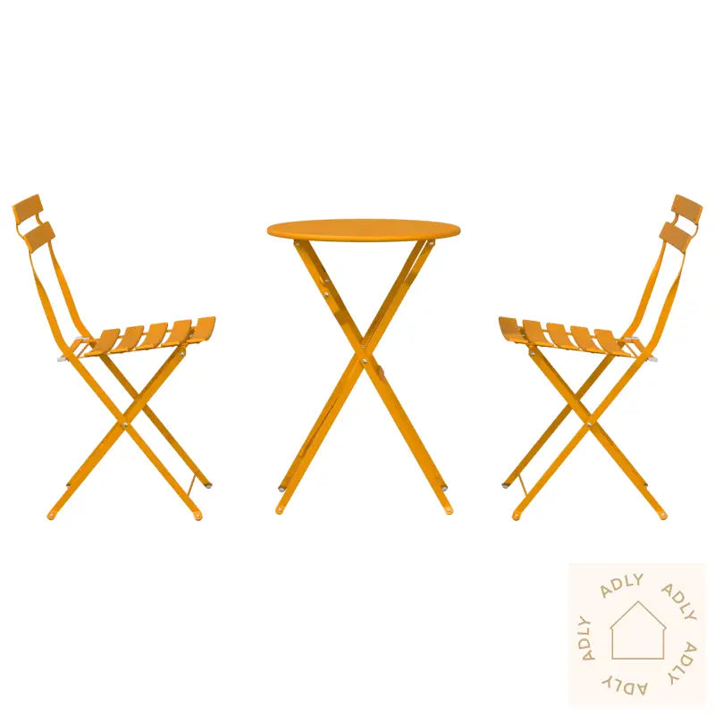 Den livlige sennepsgule fargen skaper en varm og god stemning—perfekt for uformelle måltider, morgenkaffen eller lange kvelder på terrassen. Denne fargen er både trendy og enkel å kombinere med andre utendørsmøbler og dekor.Settet består av et rundt bord og to komfortable stoler i solid metall med pulverlakkert finish. Dette gir ikke bare et moderne uttrykk, men sørger for at møblene tåler vær og vind gjennom flere sesonger uten å miste farge eller glans.Sammenleggbart design gjør det superenkelt å flytte og lagre, noe som er genialt for deg med liten plass eller som vil rydde bort møblene etter sesongen.Med den glatte, runde formen og jevne finishen passer dette settet til de fleste stiler – fra urbane balkonger til klassiske hager – og gir deg en behagelig sitteopplevelse mens du nyter uteområdet ditt.Farge: SennepsgulForm: RundMateriale: MetallFinish: MaltInnendørs/Utendørs: Bare utendørsDekning inkludert: NeiRom: Hage og terrasseBatterier inkludert: NeiHodegavl inkludert: NeiMaks antall personer: 2Overflatehøyde: 74,00 cmBen-høyde: 45,00 cmSittedybde: 38,00 cmSittekapasitet: 2Gynger: NeiStige: NeiMerke:Leveranse inneholder: BordMontering kreves: Nei