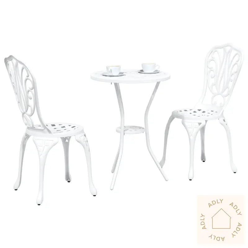 Dette runde utendørs spisebordsettet skaper en hyggelig plass for to personer, enten du vil ha et avslappende måltid i hagen, på verandaen eller balkongen. Perfekt for deg som ønsker både funksjonelle og stilige hagemøbler, gir settet en moderne vri til uterommet ditt. Den matte, hvite overflaten og solide aluminium gjør at møblene ikke bare ser bra ut, men også tåler all slags vær over tid, noe som er superpraktisk i det nordiske klimaet.