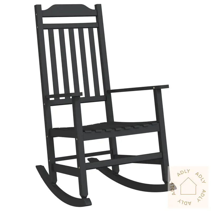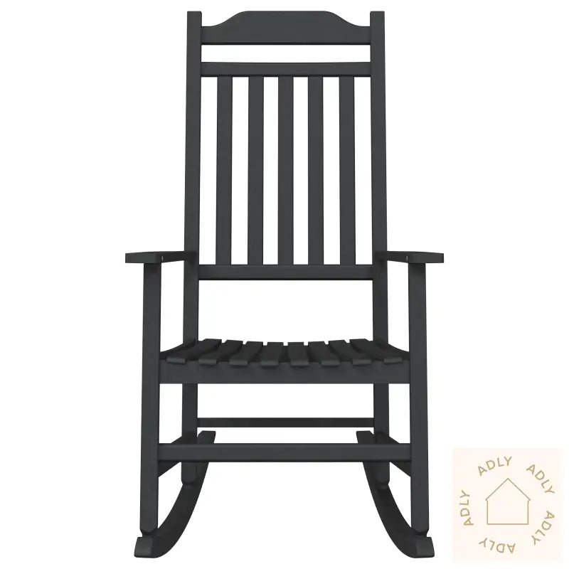 Denne rustikke, svarte gyngestolen gir uteplassen din en unik kombinasjon av stil og funksjonalitet. Laget av robust, naturlig tre, tilfører den et sjarmerende rustikt preg som er perfekt for avslapning enten du er på balkongen, i hagen eller på terrassen. Den er ideell for deg som ønsker å lene deg tilbake, nyte utsikten eller bare slappe av etter en lang dag.