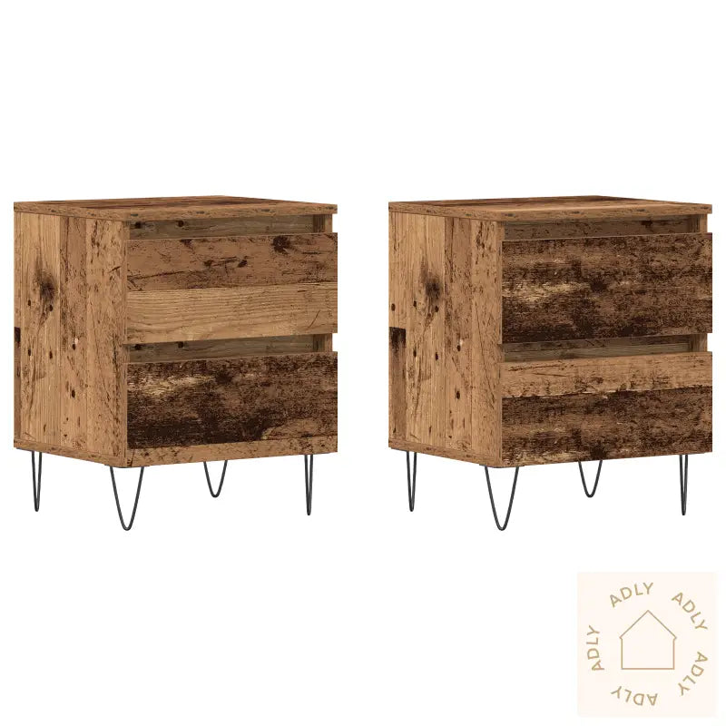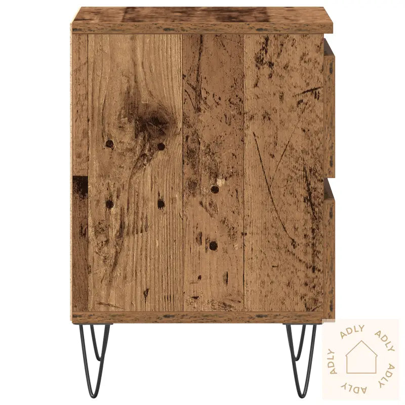 Dette nattbordsettet kombinerer rustikk sjarm med et moderne industrielt preg, og blir en stilig del av soverommet ditt. Den unike trebearbeidingen gir en varm atmosfære, og gjør at disse møblene skiller seg ut blant annet møbler til hjemmet. Bordene har robuste hårnåleben i bøyd metall som både gir god stabilitet og et moderne uttrykk, så de passer perfekt sammen med mange forskjellige interiørstiler. Det solide nattborddesignet er laget av massivt gjenvunnet tre med slitt finish, som sørger for ekte vintage-følelse og gir hvert bord sitt eget personlige preg.