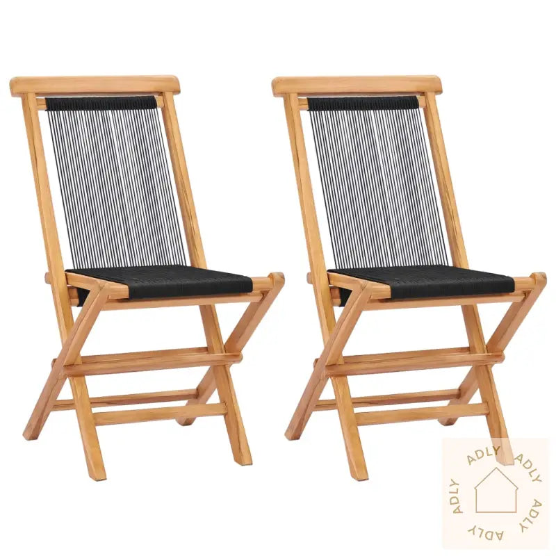 Farge: svartMaterialer: finslipt teak løvtre med vannbasert overflate, polyesterMål: 46 x 62 x 90 cm (B x D x H)Bredde sete: 33,5 cmDybde sete: 36 cmHøyde sete fra bakken: 45 cmArmlene: neiSammenleggbarMontering kreves: jaLeveransen inneholder:2 x hagestoler