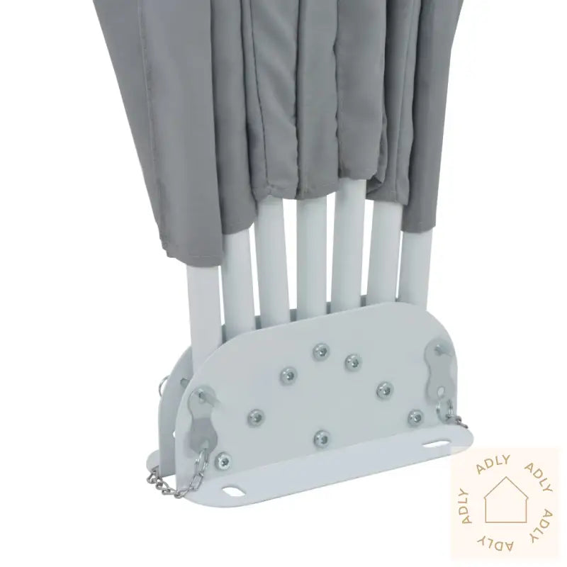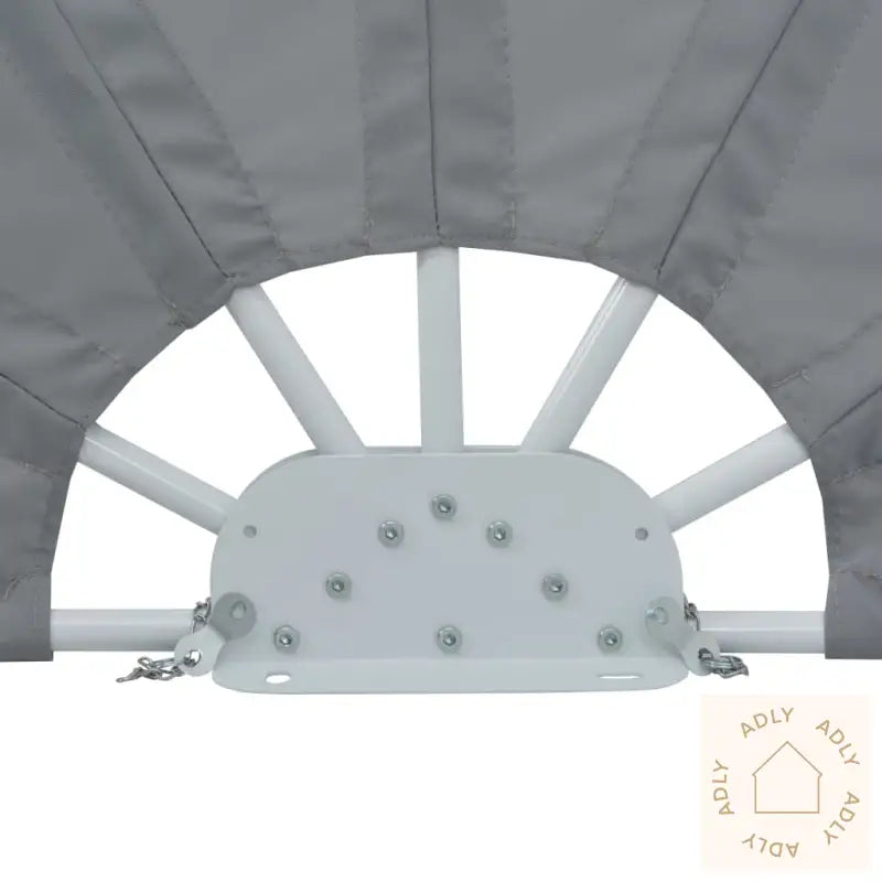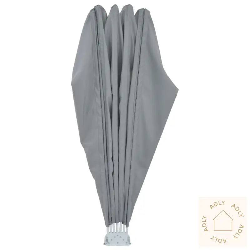 Farge: gråMaterialer: stoff + stålRadius: 200 cmVann- og smussavvisendeUV- og værbestandigSammenleggbarStoff: Polyester: 100%