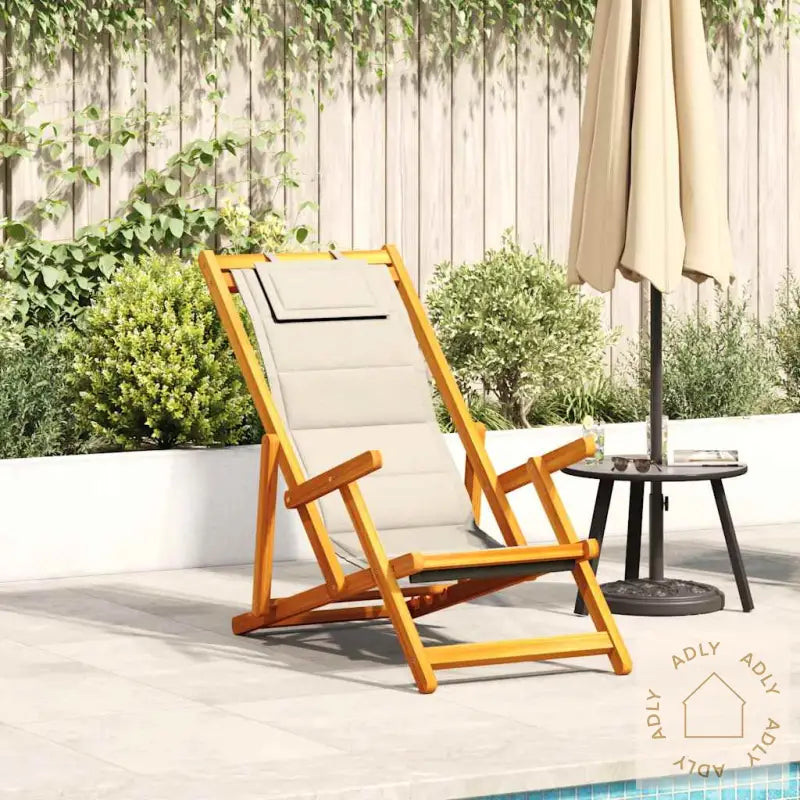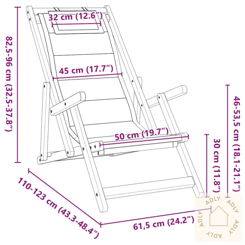 Polstret tekstilsete: Det myke setet er trukket med tekstilstoff laget av 70 % PVC og 30 % polyester. Denne slitesterke materialblandingen gjør stolen pustende, vannavvisende og holdbar nok for langvarig bruk utendørs – perfekt som både hagemøbel og til andre utendørsmøbler.Fleksibel hvileposisjon: Stolen kan justeres i tre ulike posisjoner, slik at du enkelt kan finne den beste vinkelen enten du vil lese, duppe av eller bare slappe av og nyte utsikten.Stabilitet og varighet: Rammen i massivt akasietre gir fantastisk stabilitet og tåler hyppig bruk. Akasie er kjent for å være motstandsdyktig mot vær og vind, så du får et møbel til hjemmet og hagen som varer lenge.Plassbesparende og enkel å ta med: Den smarte sammenleggbare designen gjør stolen lett å pakke ned og transportere, perfekt til både ferie og små uterom der hver kvadratmeter teller.Ekstra komfort: Stolen leveres med både armlener og en støttende nakkestøttepute, noe som gir deg høy komfort selv når du bruker stolen over lang tid. Den polstrede finishen gjør den ekstra koselig for lange sommerkvelder ute.Godt å vite: