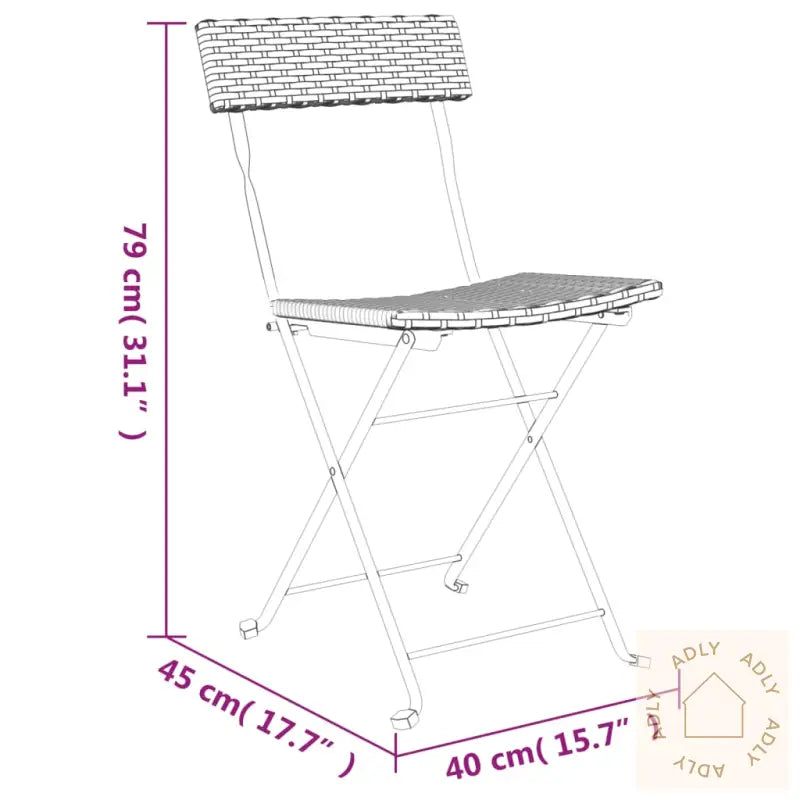 Slitesterkt materiale: Bistrostolene er laget av PE-rotting (også kjent som polyrotting), som ikke bare ser elegant ut, men også tåler både regn og sol uten å miste formen eller farge. Det lette materialet gjør det enkelt å flytte på stolene, og du rengjør de i en fei. PE-rotting gir deg et rimelig og vedlikeholdsfritt alternativ innen hagemøbler, uten å ofre verken komfort eller holdbarhet.Stabil ramme: Stolene har en kraftig stålramme med pulverlakkering som beskytter mot rust og gjør at de holder lenge. Dette gir deg møbler til hjemmet som er både stabile, robuste og trygge å bruke over tid.Sammenleggbart design: Med sitt smarte design kan disse hagestolene foldes sammen på sekunder. Det gjør dem enkle å stue bort i boden eller transportere hvis du skal bruke dem et annet sted – perfekt for deg som ønsker fleksible og plassbesparende møbler.Godt å vite: