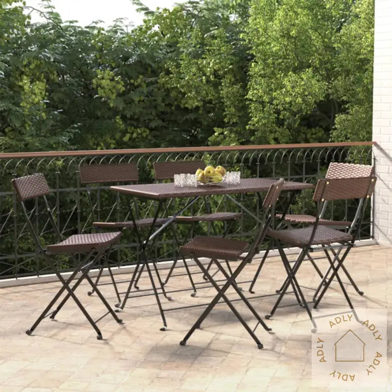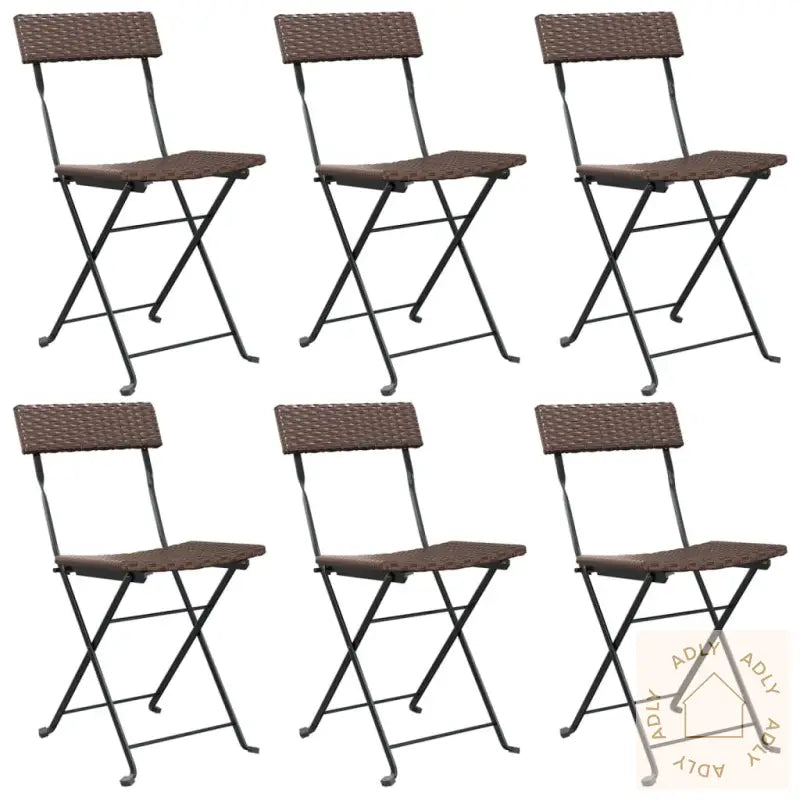 For å bevare utseendet på dine møbler, spesielt hvis de står ute året rundt, anbefaler vi å bruke vanntett trekk. Dette forlenger levetiden og holder stolene pene lenger – spesielt nyttig for deg som investerer i kvalitetsmøbler til hjemmet og uterommet.Farge: brunMaterialer: PE-rotting, pulverlakkert stålMål: 40 x 45 x 79 cm (B x D x H)Mål sete: 40 x 28 cm (B x D)Høyde sete fra bakken: 47 cmMaksimal lastekapasitet (per sete): 110 kgLeveransen inneholder:6 x bistrostolerOppgrader uterommet ditt med sammenleggbare bistrostoler – brukervennlige, plasseffektive og flotte hagemøbler som gjør hagen, balkongen eller terrassen din ekstra innbydende. Disse møblene passer perfekt sammen med andre utemøbler, bokhyller og stående hyller for en komplett og gjennomført stil.