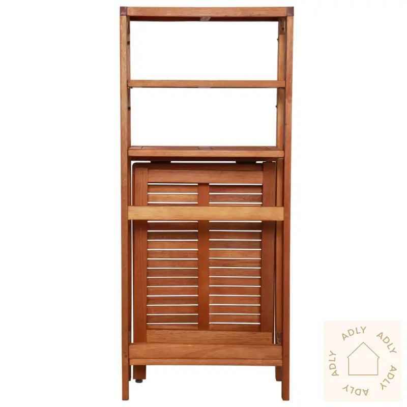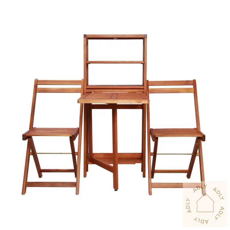 Lagringshyllen er smart utformet for å være fleksibel: Når du har behov for mer bordplass, kan du lett utvide hyllen og bruke den som et praktisk bord. Når bordet ikke trengs, fungerer det som en lagringshylle som hjelper deg å holde orden ute. En stor fordel er at de to sammenleggbare stolene enkelt kan brettes sammen og ryddes bort inne i bordet når de ikke er i bruk – perfekt for deg som vil spare plass og ha det ryddig.