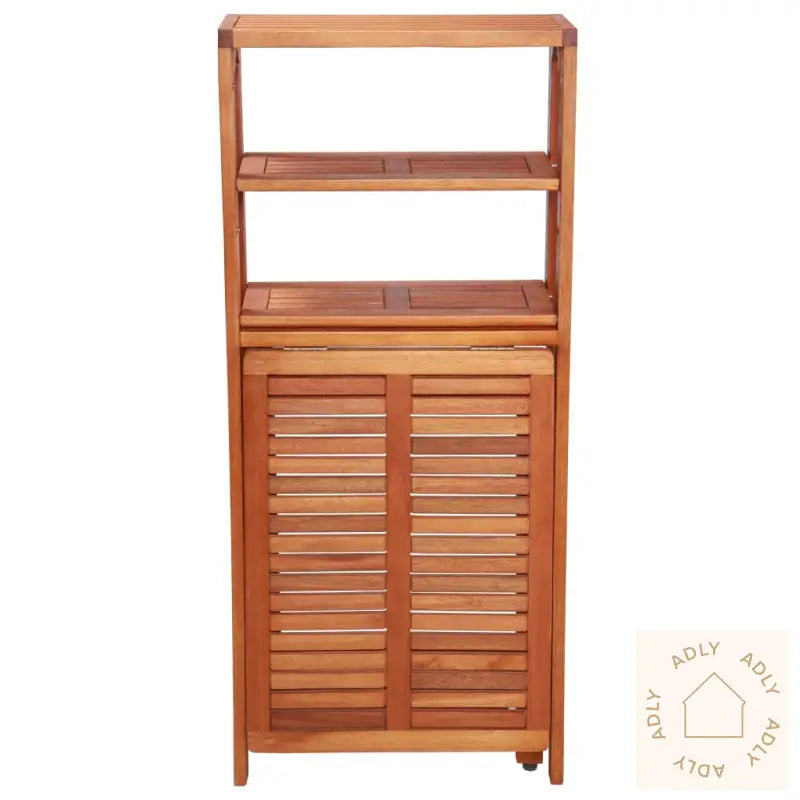 Materiale: oljebehandlet heltre akasieMål lagringshylle (ubrettet): 50 x 82,5 x 116 cm (B x D x H)Mål lagringshylle (brettet): 50 x 20 x 116 cm (B x D x H)Mål stol: 40 x 51 x 80 cm (B x D x H)Høyde sete fra bakken: 44 cmLagringshyllen kan utvides til bruk som bordStolene kan brettes og lagres inne i bordetLeveringen inkluderer 1 lagringshylle og 2 sammenleggbare stolerSlitesterkt og værbestandig materialeEnkel montering