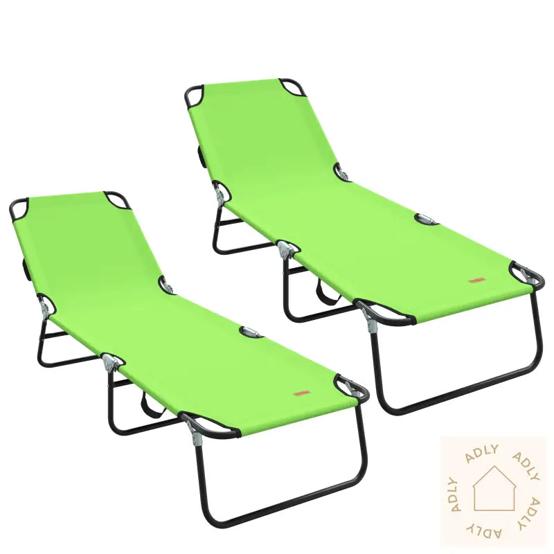 Dette sammenleggbare solstolsettet er det perfekte valget for deg som vil ha ekte avslapning ute i hagen eller på balkongen. Den friske, grønne fargen og et moderne design gir en stilig kontrast til utendørsområdet ditt – perfekt til deg som liker trendy hagemøbler som både ser bra ut og er komfortable. Nyt lange, solfylte dager mens du slapper av i disse slitesterke solstolene.