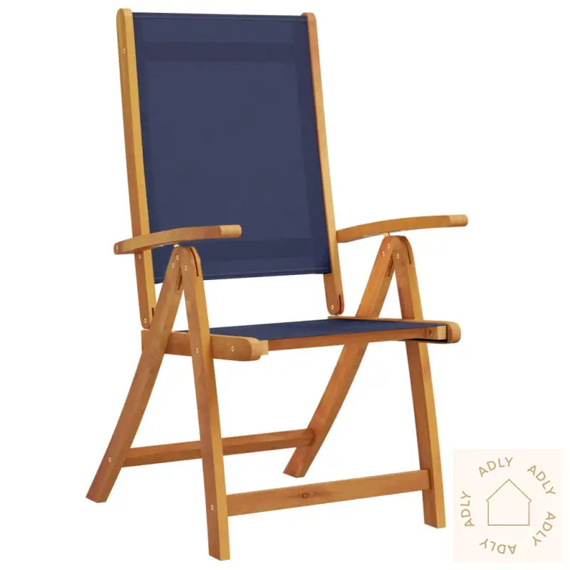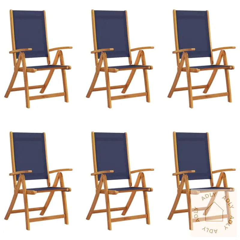 For å sikre at møblene dine holder seg pene over tid, anbefaler vi å bruke et vanntett trekk når de ikke er i bruk.Farge: blåMaterialer: heltre akasie med oljebehandling, textilene stoffMål: 57 x 72 x 109 cm (B x D x H)Høyde sete fra bakken: 45 cmHøyde armlene fra bakken: 66 cmMaksimal lastekapasitet (per sete): 110 kgMontering kreves: jaPute inkludert: neiLeveransen inneholder:6 x sammenleggbare hagestoler