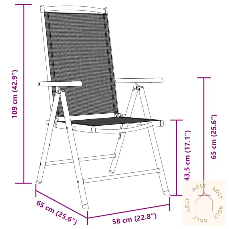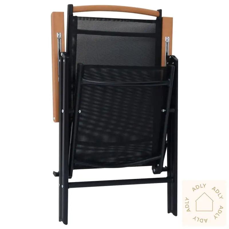 Farge: svartMaterialer: pulverlakkert aluminium, textileneMål stol: 58 x 65 x 109 cm (B x D x H)Bredde sete: 44 cmDybde sete: 44 cmHøyde sete fra bakken: 43,5 cmHøyde armlene fra bakken: 65 cmRyggen kan justeres i 7 stillingerVærbestandige materialer for lang holdbarhetLeveringen inneholder 2 klappstolerMaks belastning per sete: 110 kgMontering kreves: jaStoff: Polyester: 30%, PVC: 70%