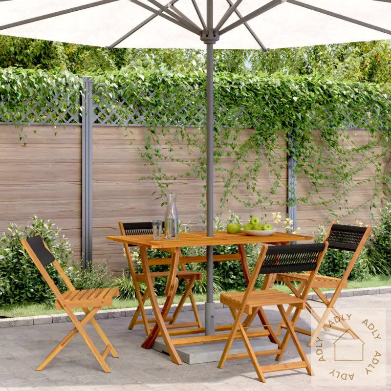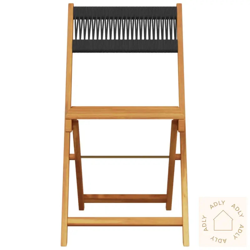 For å holde utemøblene dine fine år etter år, anbefales det å bruke vanntett trekk når du ikke bruker dem.Farge: svartMaterialer: heltre akasie med oljefinish, tauSamlet mål: 41 x 52,5 x 102,5 cm (B x D x H)Mål sete: 37 x 32,5 cm (B x D)Høyde sete fra bakken: 44 cmMaksimal lastekapasitet (per sete): 110 kgMontering kreves: jaPute inkludert: neiLeveransen inneholder:4 x sammenleggbare hagestoler