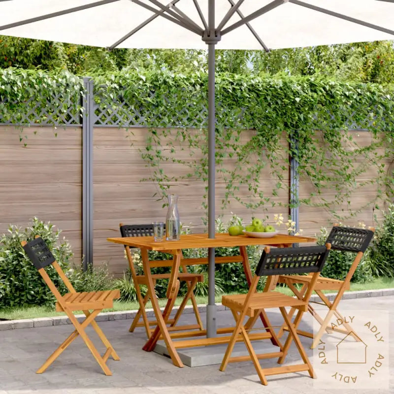 Robust og stabil: Stolene er laget av heltre akasie, et materiale kjent for sin styrke, flotte naturlige farger og karakteristiske kornmønstre. Akasie gir høy stabilitet, tåler norske værforhold godt, og egner seg perfekt for hagemøbler som skal stå ute året rundt.Slitesterkt materiale: Sete og rygg er trukket i PE-rotting (polyrotting) – et solid, vedlikeholdsfritt og moderne materiale som minner om naturlig rotting. Dette gjør sammenleggbare hagestoler lette, enkle å rengjøre og svært motstandsdyktige mot regn, sol og fuktighet, noe som gir lang levetid på utemøblene dine.Enkel å bære og oppbevare: Takket være det smarte, sammenleggbare designet kan du raskt pakke bort stolene når de ikke er i bruk. Superpraktisk både for lagring inne gjennom vinteren eller for å ta dem med på hytta eller camping.Praktisk design: De flate armlenene i tre gir ekstra komfort – perfekte for å hvile armene mens du nyter utetiden, en god bok eller en kaffekopp. Det tidløse uttrykket passer lett inn blant andre møbler til hjemmet og hagen.Allsidig bruk: Disse sammenleggbare hagestolene passer overalt – enten det er hagen, terrassen, verandaen, balkongen, eller andre uteområder hvor du vil ha det behagelig. Passer utmerket alene eller sammen med andre hagemøbler.Godt å vite: