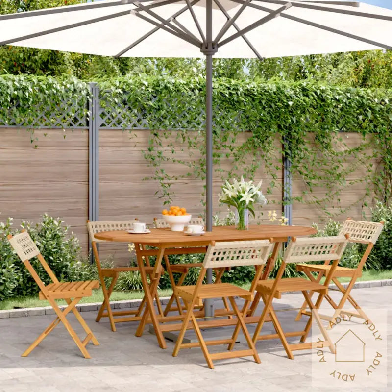 Robust og stabil: Stolene er laget av heltre akasie, et naturmateriale kjent for både styrke og lang levetid. Akasie har et vakkert fargespill og naturlig åremønster, noe som gjør hver stol unik og gir uterommet et lunt, innbydende preg. Materialet tåler vær og vind godt, så du får hagemøbler du kan stole på gjennom mange sesonger.Slitesterkt materiale: Rygg og sete er flettet med PE-rotting, også kalt polyrotting. Dette syntetiske materialet kombinerer lavt vedlikeholdsbehov med det klassiske utseendet til ekte rotting. Polyrotting er både lett i vekt, enkelt å holde rent og svært motstandsdyktig mot både sol, regn og temperaturendringer.Enkel å bære og oppbevare: Når du ikke bruker hagestolene, kan de raskt og enkelt slås sammen. Perfekt når du vil spare plass eller ta dem med for bruk i parken, på hytta eller til andre utendørs aktiviteter.Praktisk design: Flate trearmlener gir ekstra komfort og lar deg hvile armene behagelig mens du slapper av ute. Armlenene i heltre akasie understreker det solide kvalitetsinntrykket.Ulike bruksområder: Disse sammenleggbare hagestolene passer perfekt i alle uterom – fra hage og terrasse til balkong. Ideelt valg for deg som ønsker møbler til hjemmet som kan brukes både på små og store områder.Godt å vite: