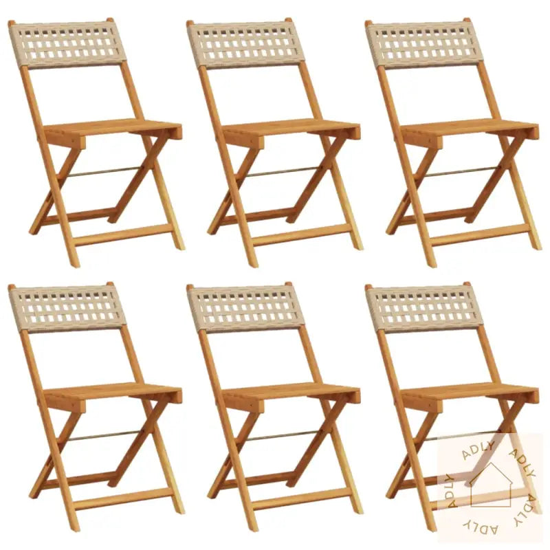 For å ta best mulig vare på dine hagemøbler og bevare det flotte utseendet på heltre akasie anbefaler vi å bruke et vanntett trekk når møblene ikke er i bruk.Farge: beigeMaterialer: heltre akasie med oljefinish, PE-rottingSamlet mål: 41 x 52,5 x 102,5 cm (B x D x H)Mål sete: 37 x 32,5 cm (B x D)Høyde sete fra bakken: 44 cmMaksimal lastekapasitet (per sete): 110 kgMontering kreves: jaPute inkludert: neiLeveransen inneholder:6 x sammenleggbare hagestoler